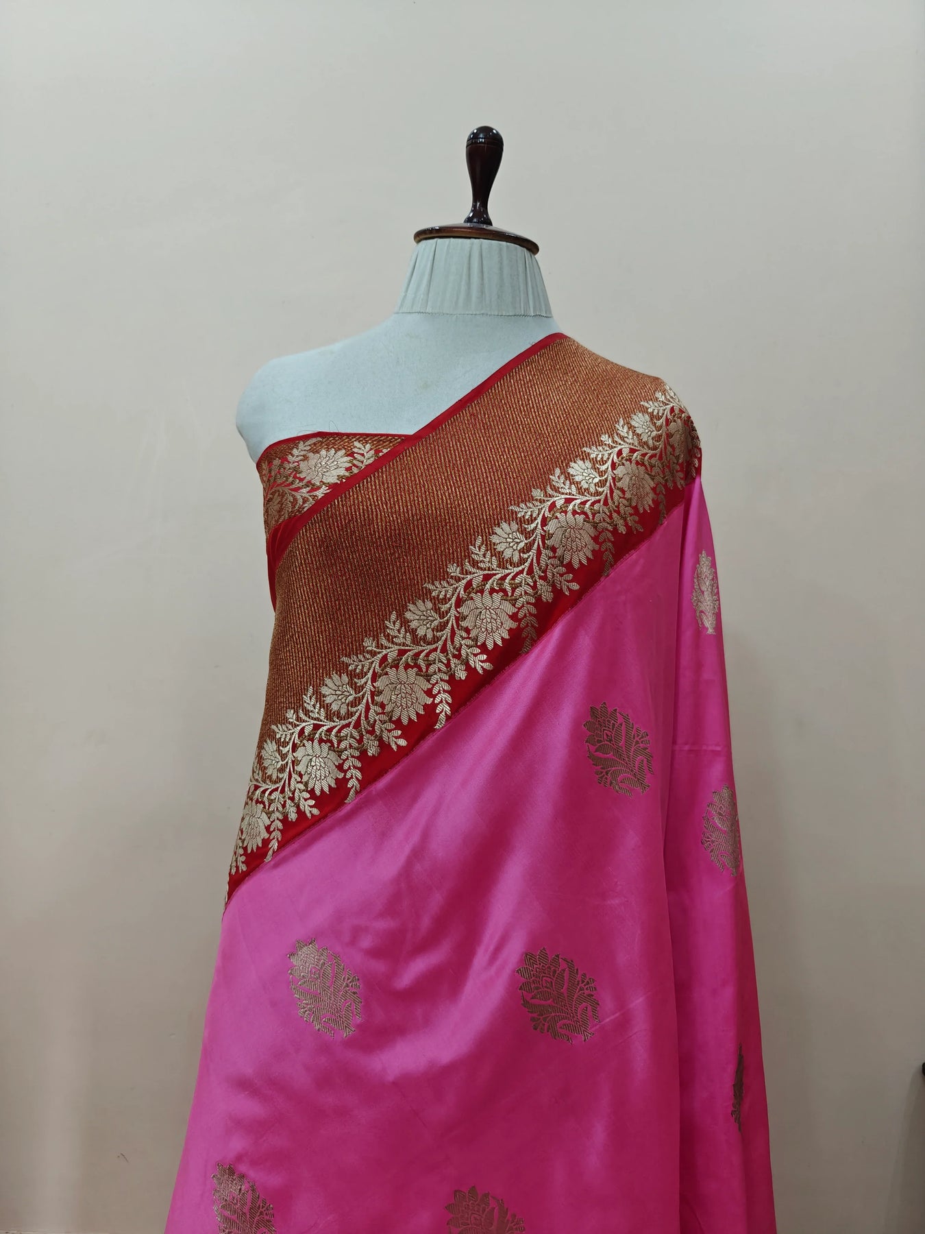 Pink Pure Katan Silk Handloom Banarasi Saree