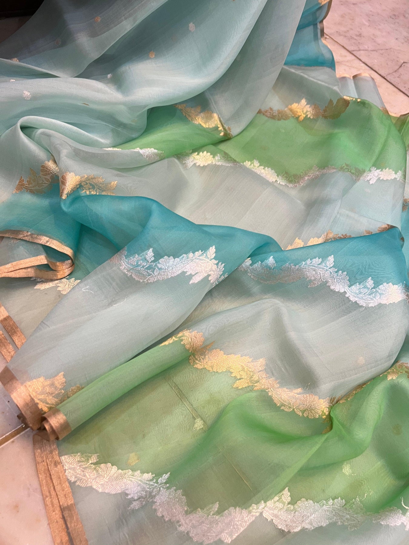 - Keep away from direct sunlight to maintain the color and zari shine.