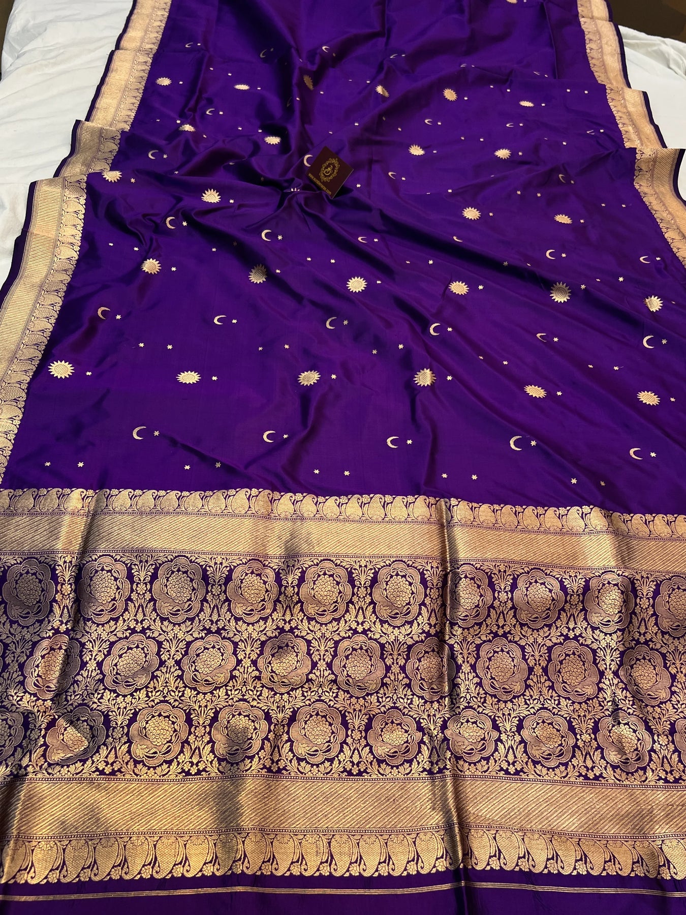 Purple Pure Katan Silk Handloom Banarasi Saree