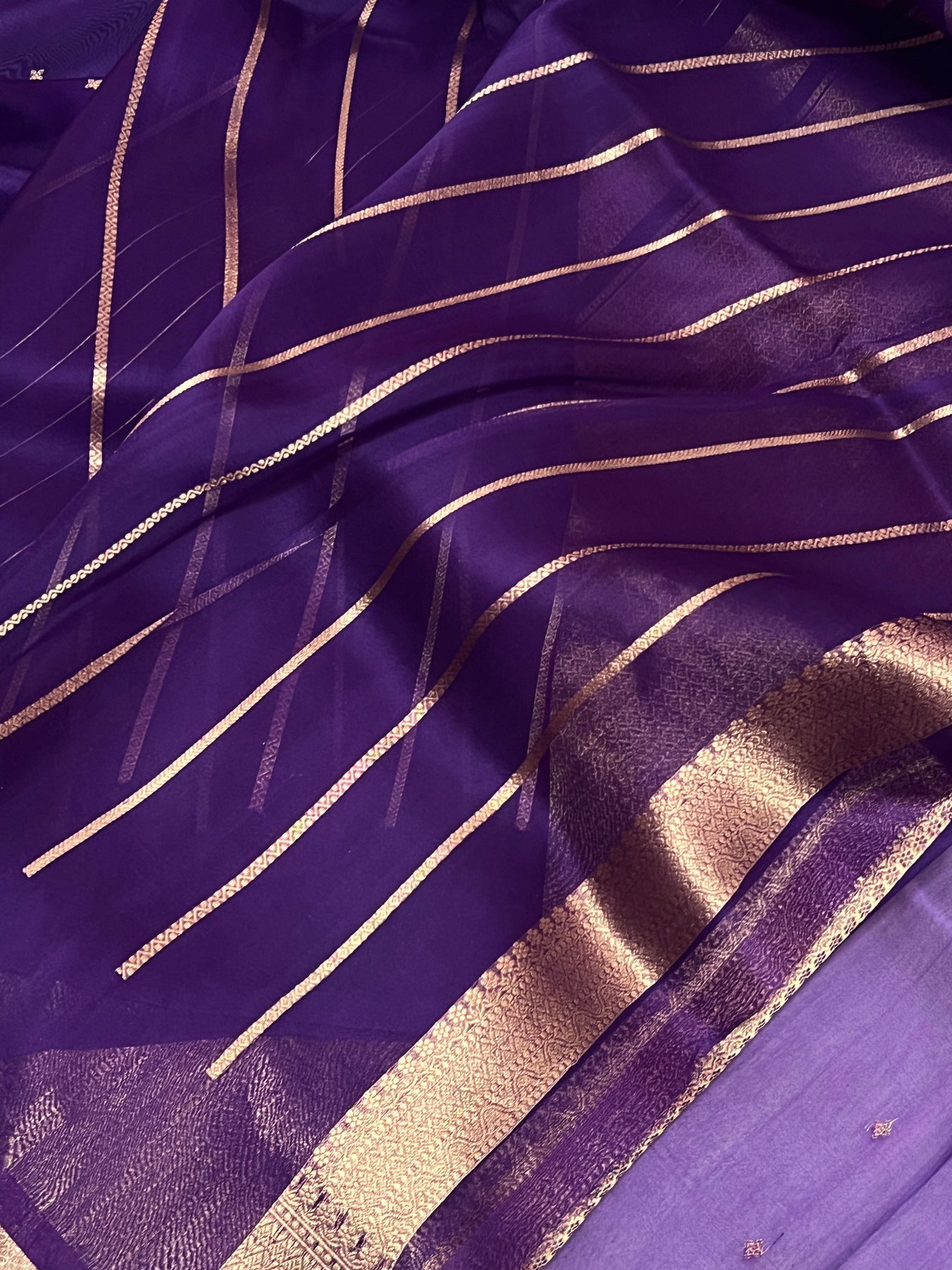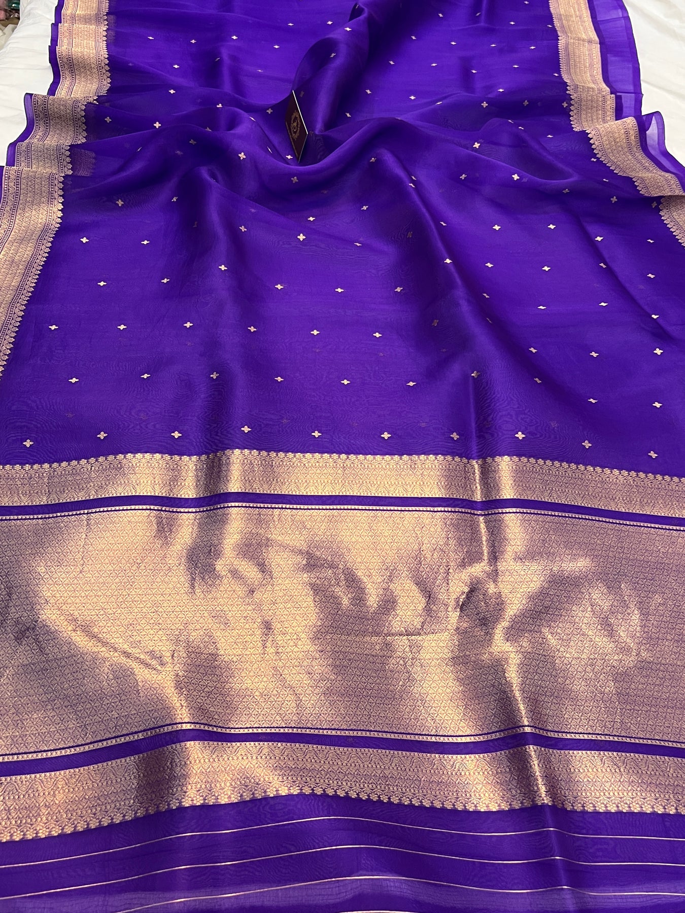 Purple Pure Kora Silk Handloom Banarasi Saree