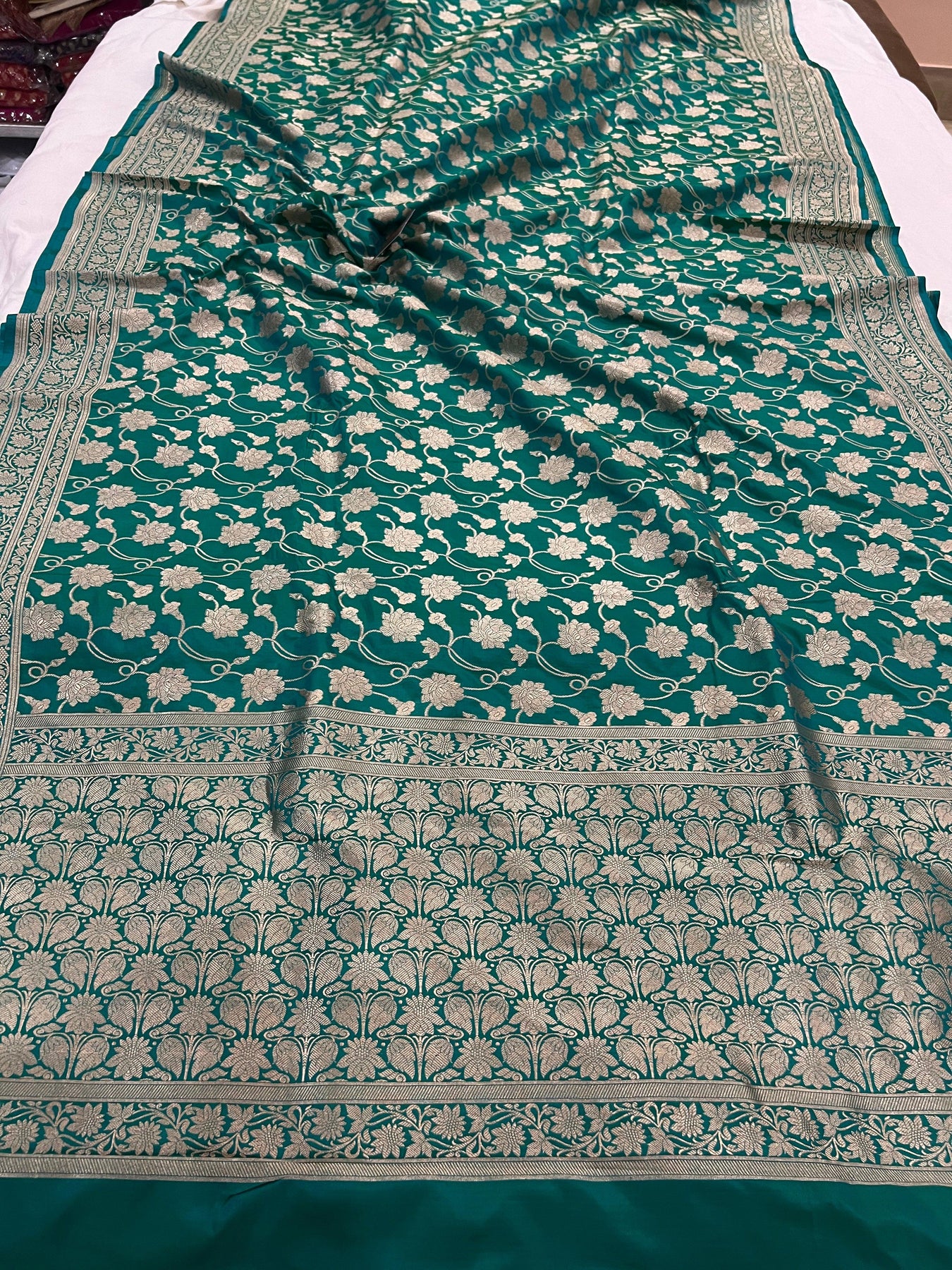 Rama Green Pure Banarasi Handloom Katan Silk Saree