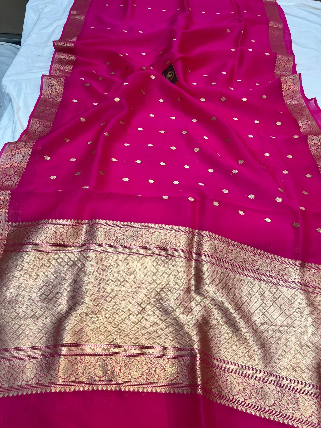Rani Pink Banarasi Handloom Kora Silk Saree