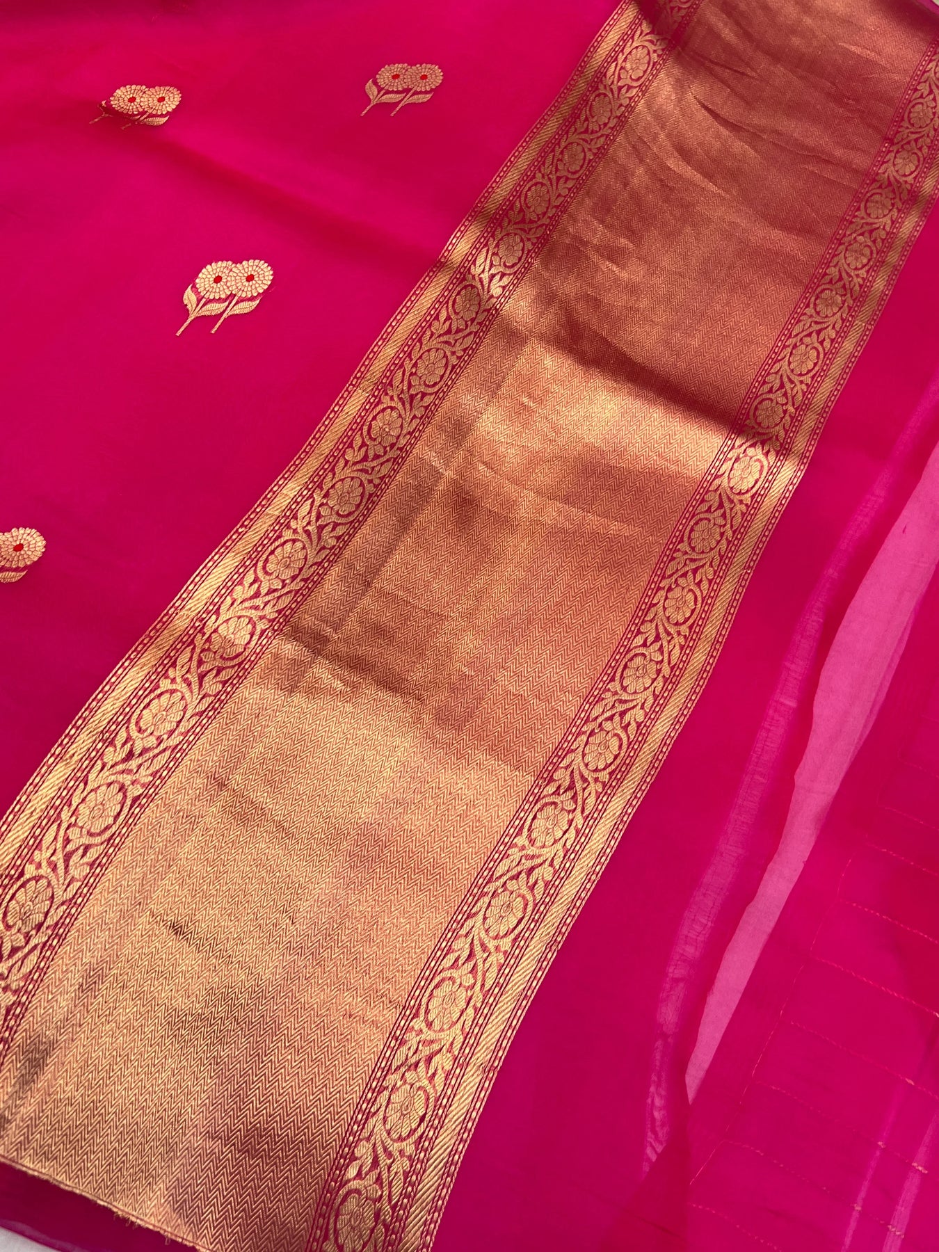 Rani Pink Pure Kora Silk Handloom Banarasi Saree