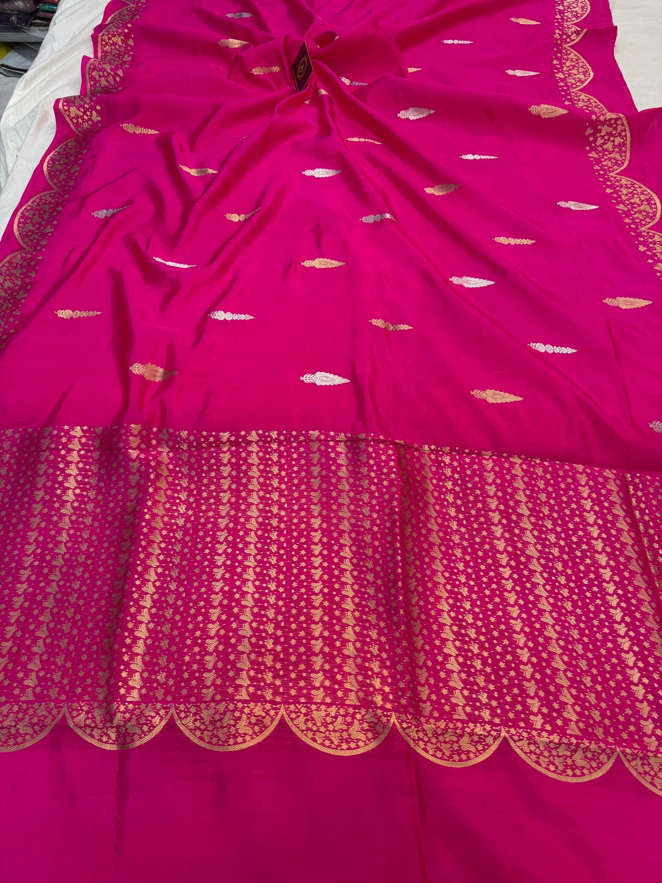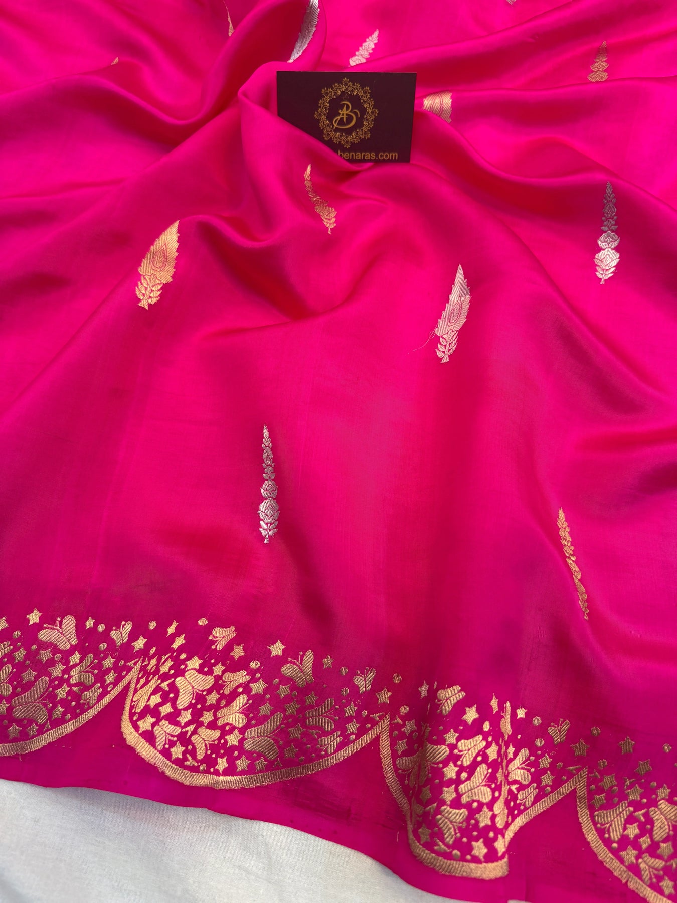 Rani Pink Pure Silk Handloom Banarasi Saree