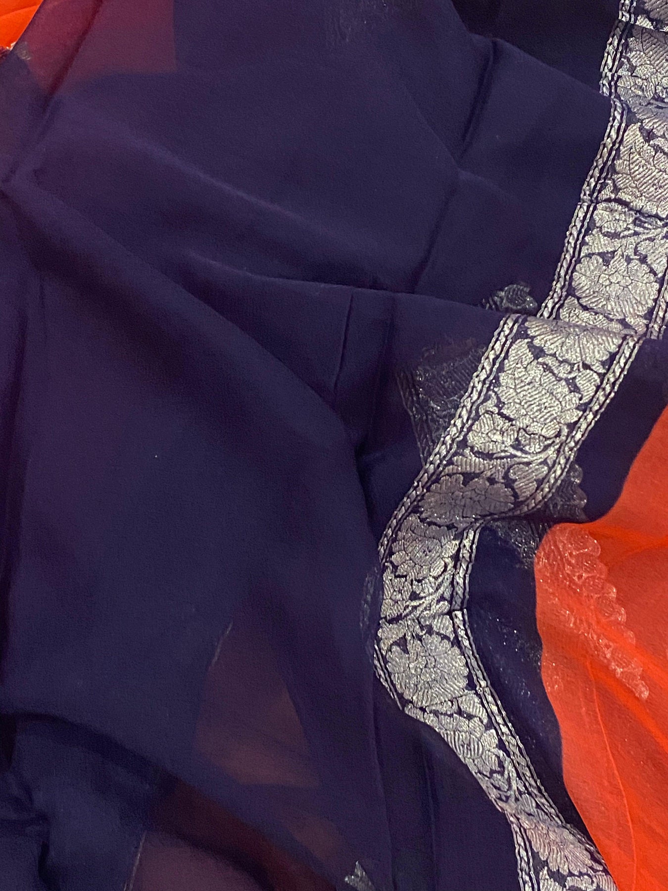 Red Khaddi Chiffon Banarasi Handloom Saree