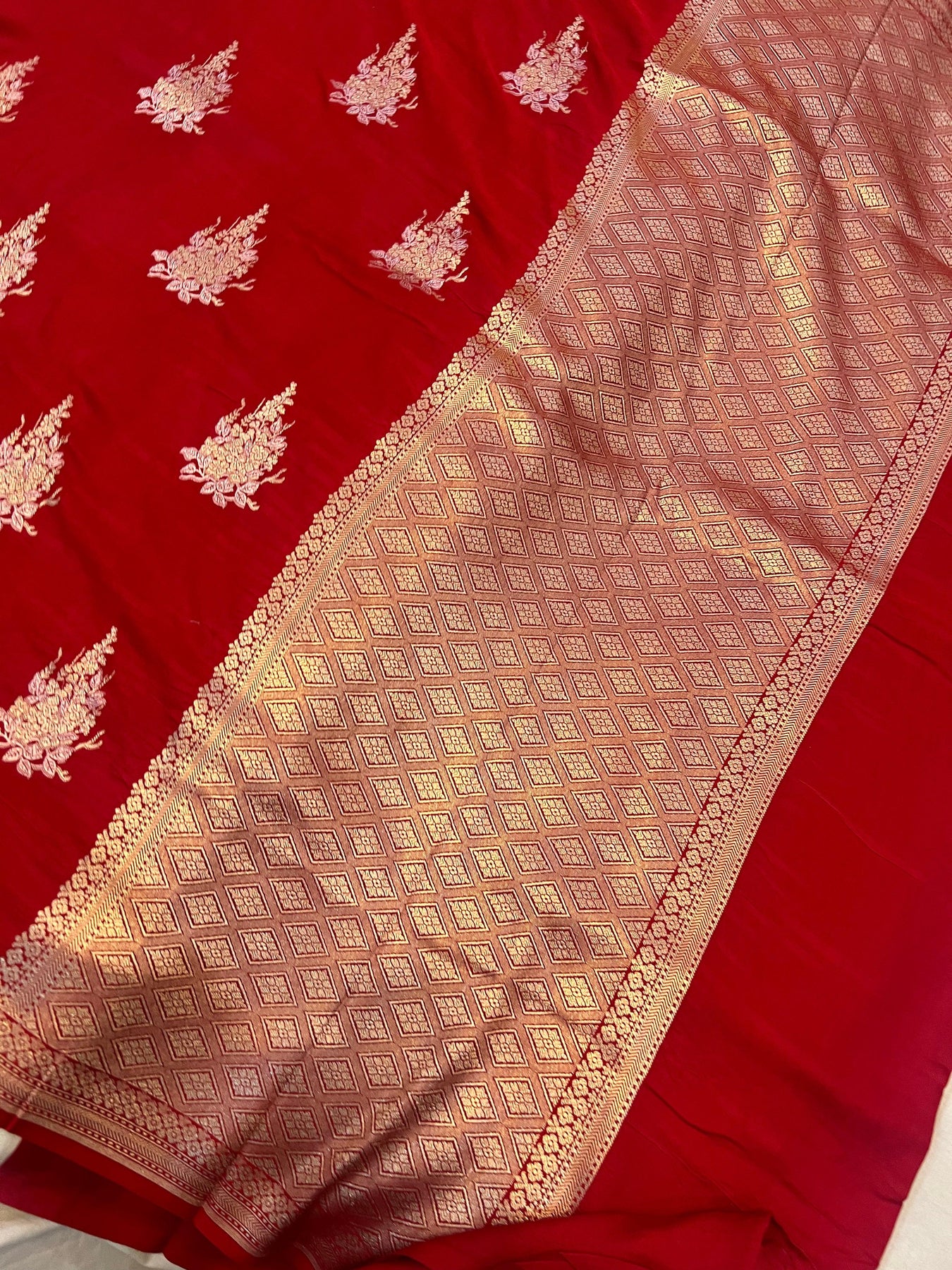 Red Banarasi Mashru Silk Saree – Buy Pure Handloom | Aura Benaras