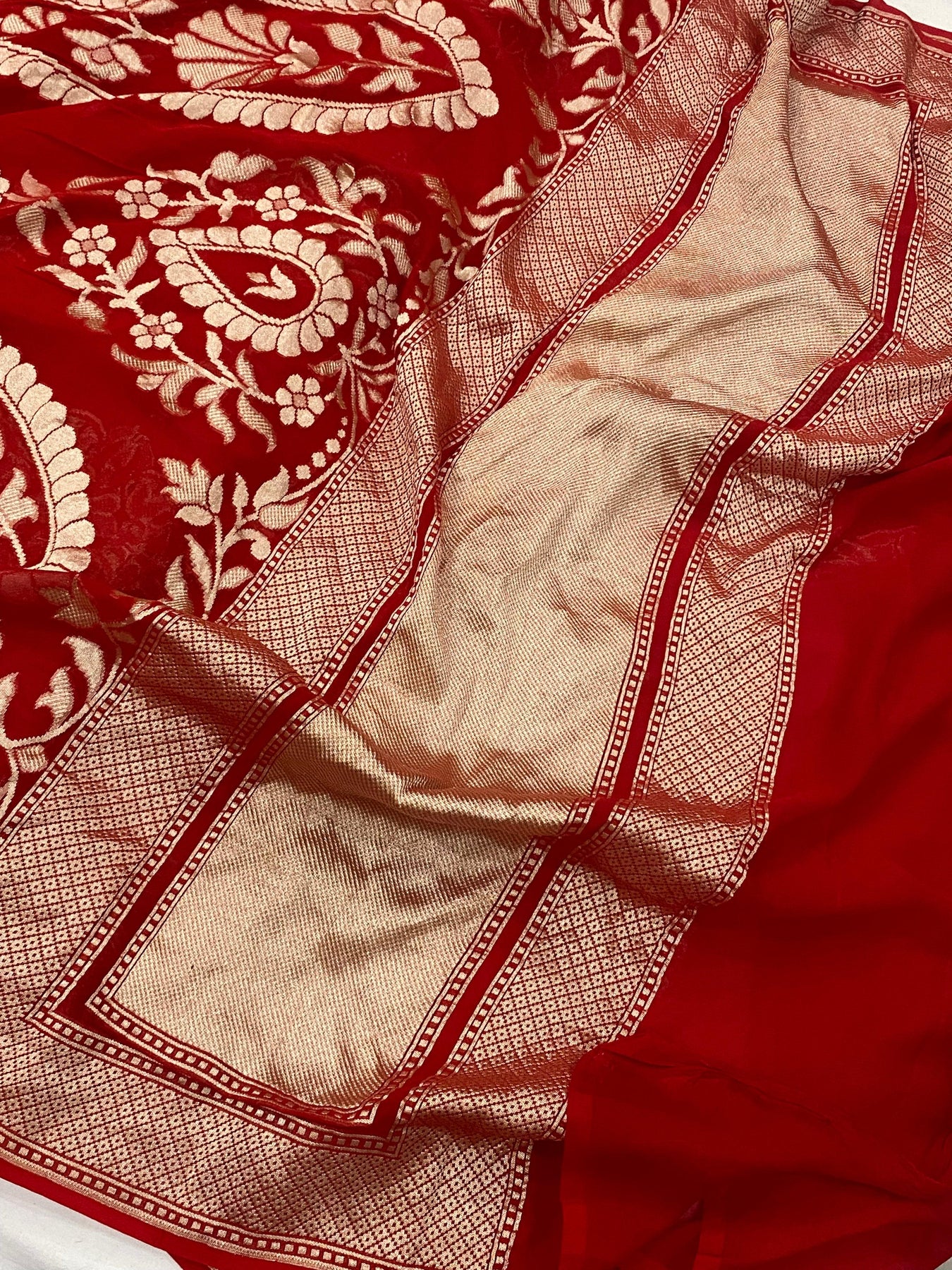 Red Pure Banarasi Khaddi Georgette Saree