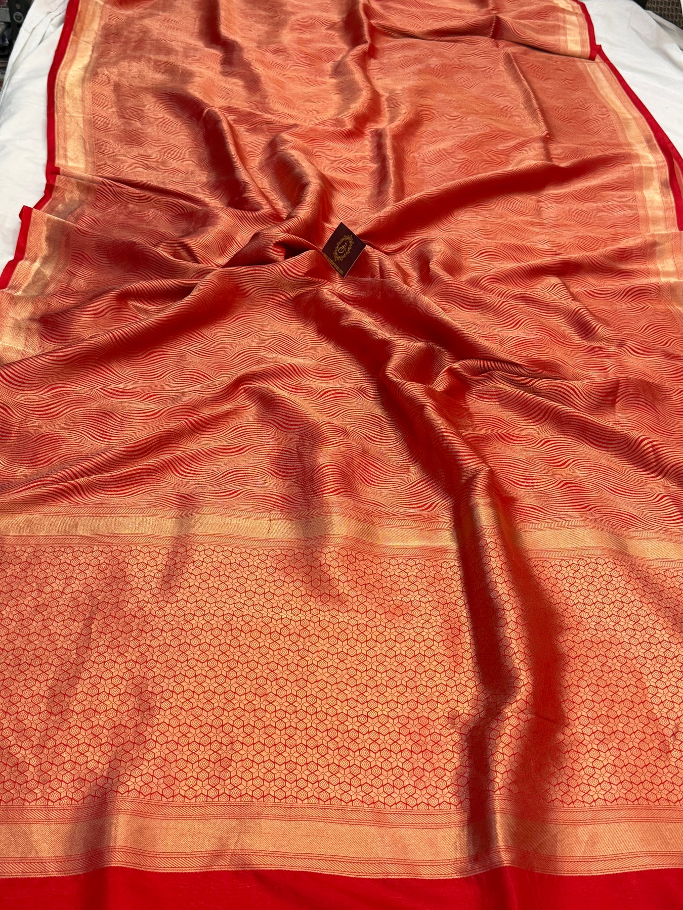 Immerse yourself in timeless elegance with this Red pure Katan silk handloom Banarasi saree, masterfully adorned with exquisite allover brocade work. The saree features a beautiful and intricate floral design that celebrates the heritage of Banarasi craftsmanship, adding a touch of luxury and sophistication. The highlight of this masterpiece is its rich and opulent pallu, designed to create a regal and captivating look that’s perfect for weddings, festive occasions, and grand celebrations. Paired with a plain blouse piece for a refined balance, this Banarasi saree is a celebration of tradition and elegance that never goes out of style.