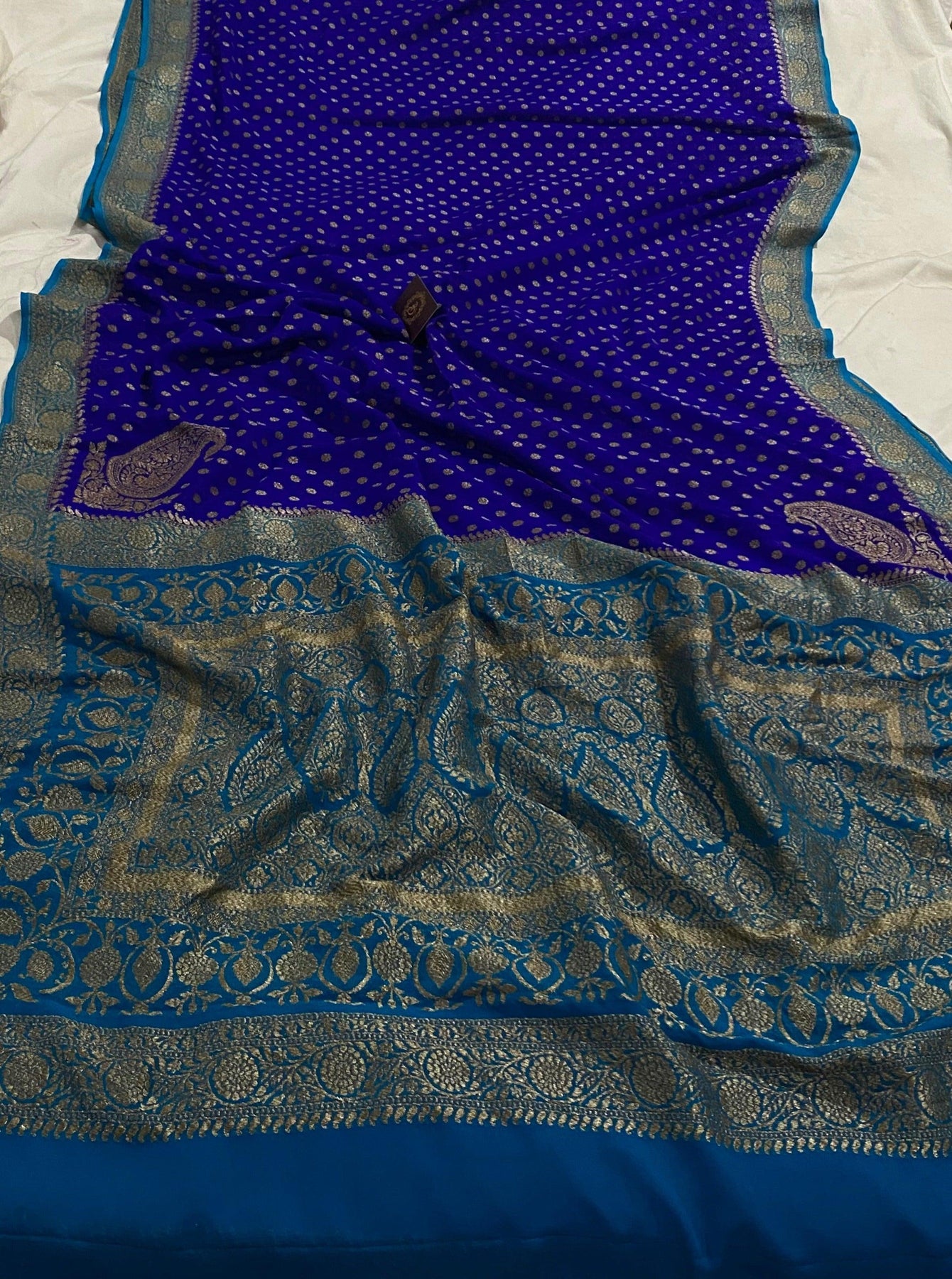 Royal Blue Pure Banarasi Khaddi Georgette Saree