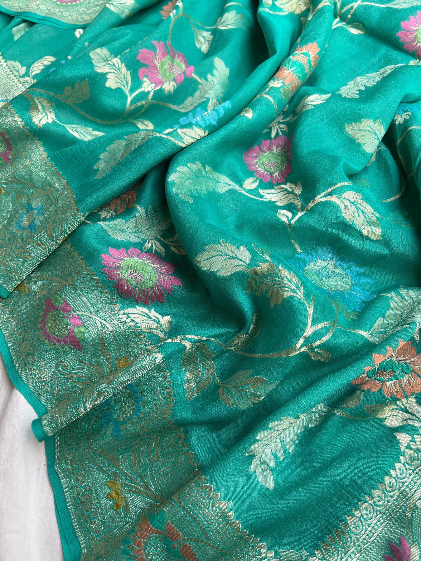 Sea Green Banarasi Handloom Pure Tussar Georgette Saree