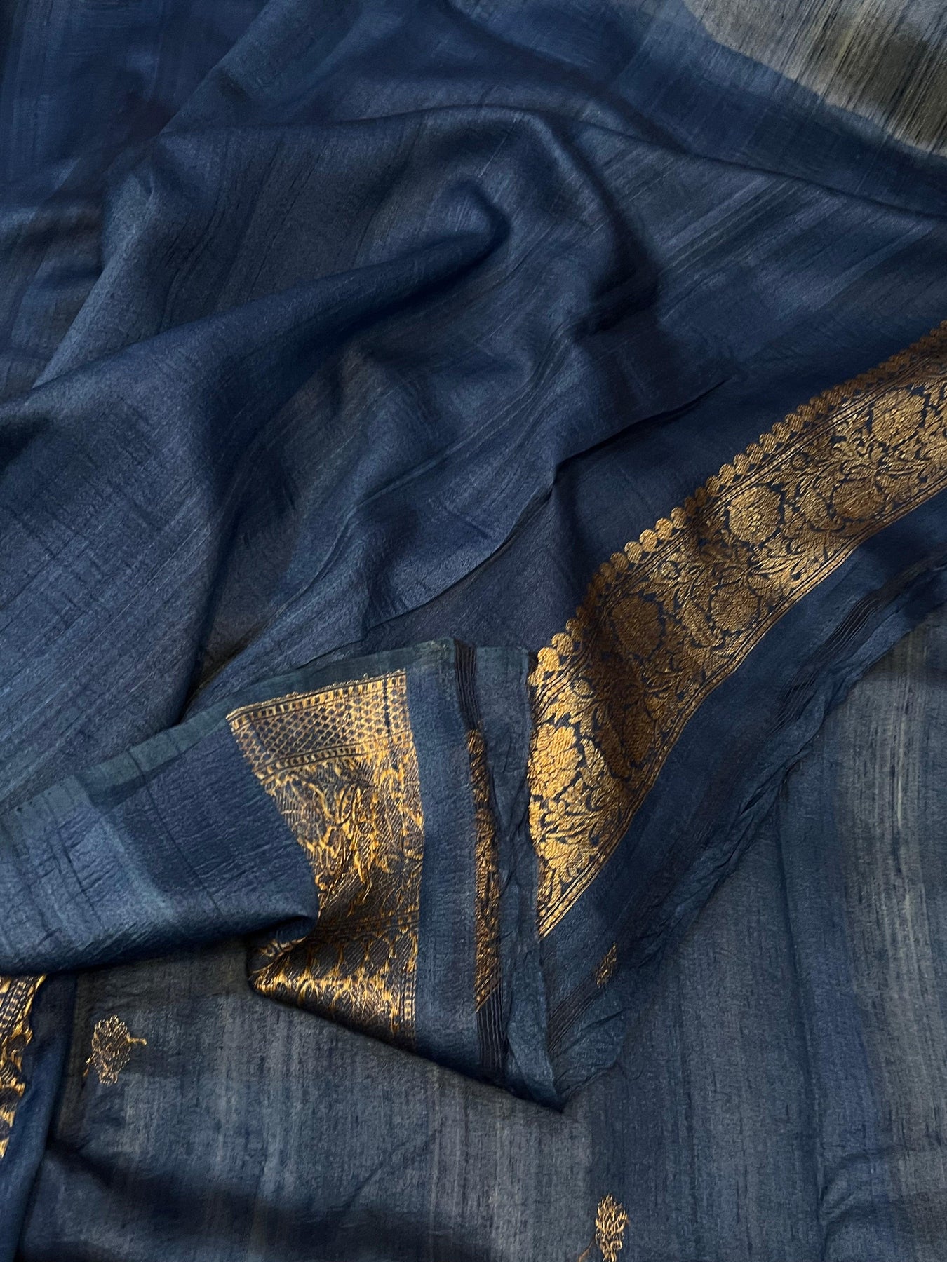 Teal Banarasi Handloom Pure Tussar Silk Saree