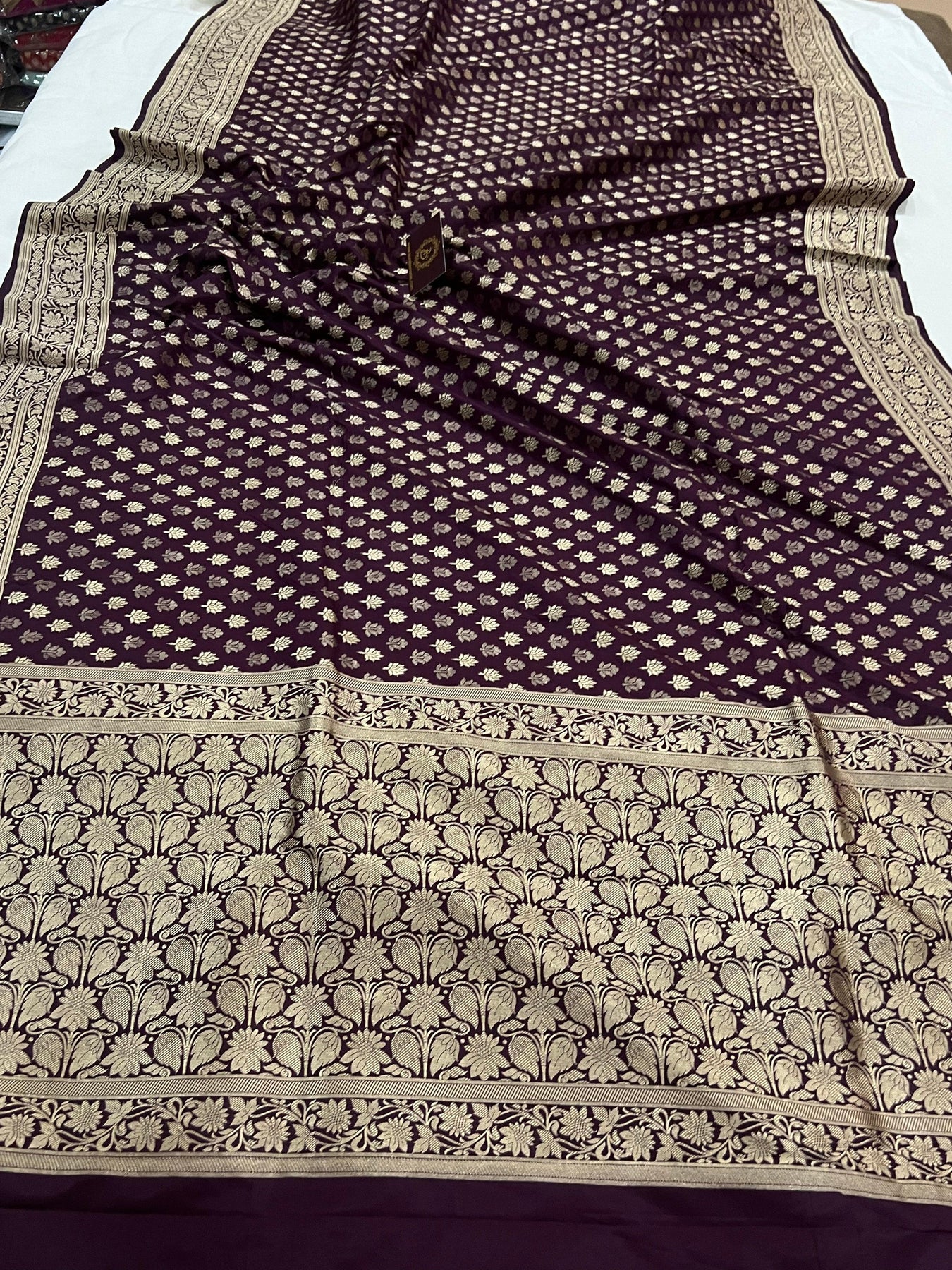 Deep wine Pure Banarasi Handloom Katan Silk Saree