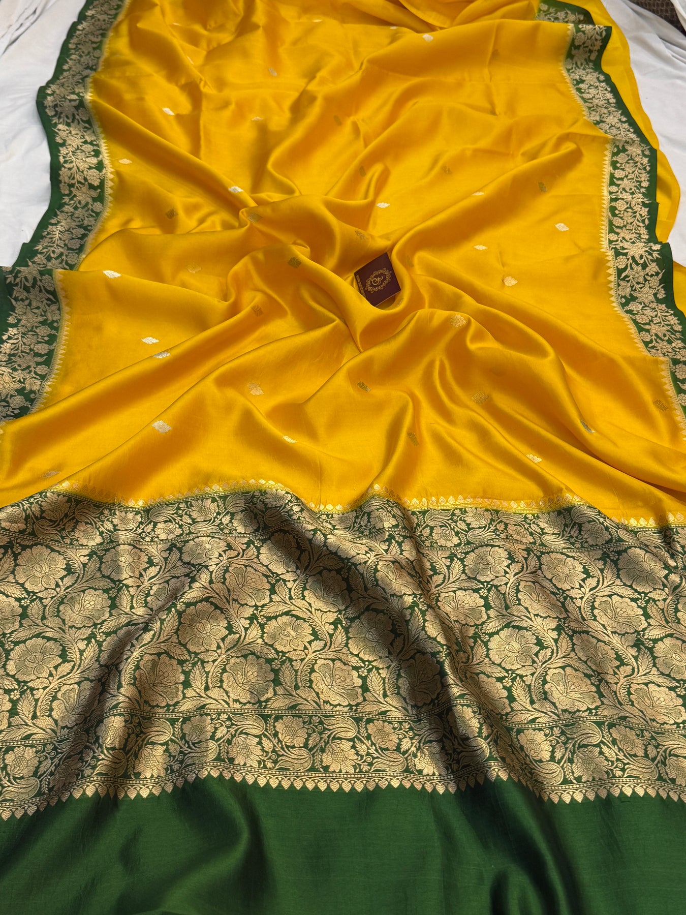 - ColorΒ - Yellow Banarasi saree with Green contrast.