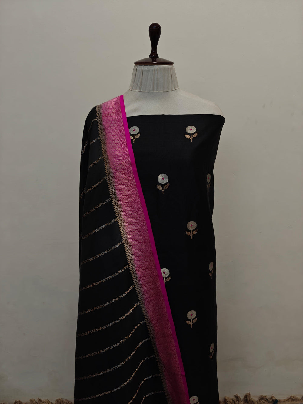 Crafted with purity and precision, our Pure Banarasi silk suit range highlights authentic weaving techniques. Every Pure Banarasi silk suit carries the charm of heirloom-worthy artistry and a finish that feels both royal and effortless.
