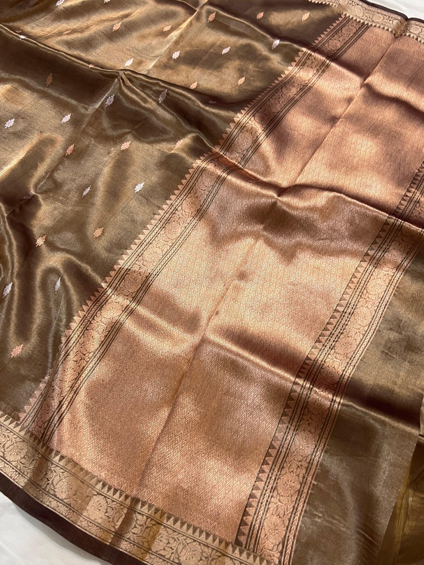 Chocolate Brown Pure Banarasi Handloom Tissue Silk Saree