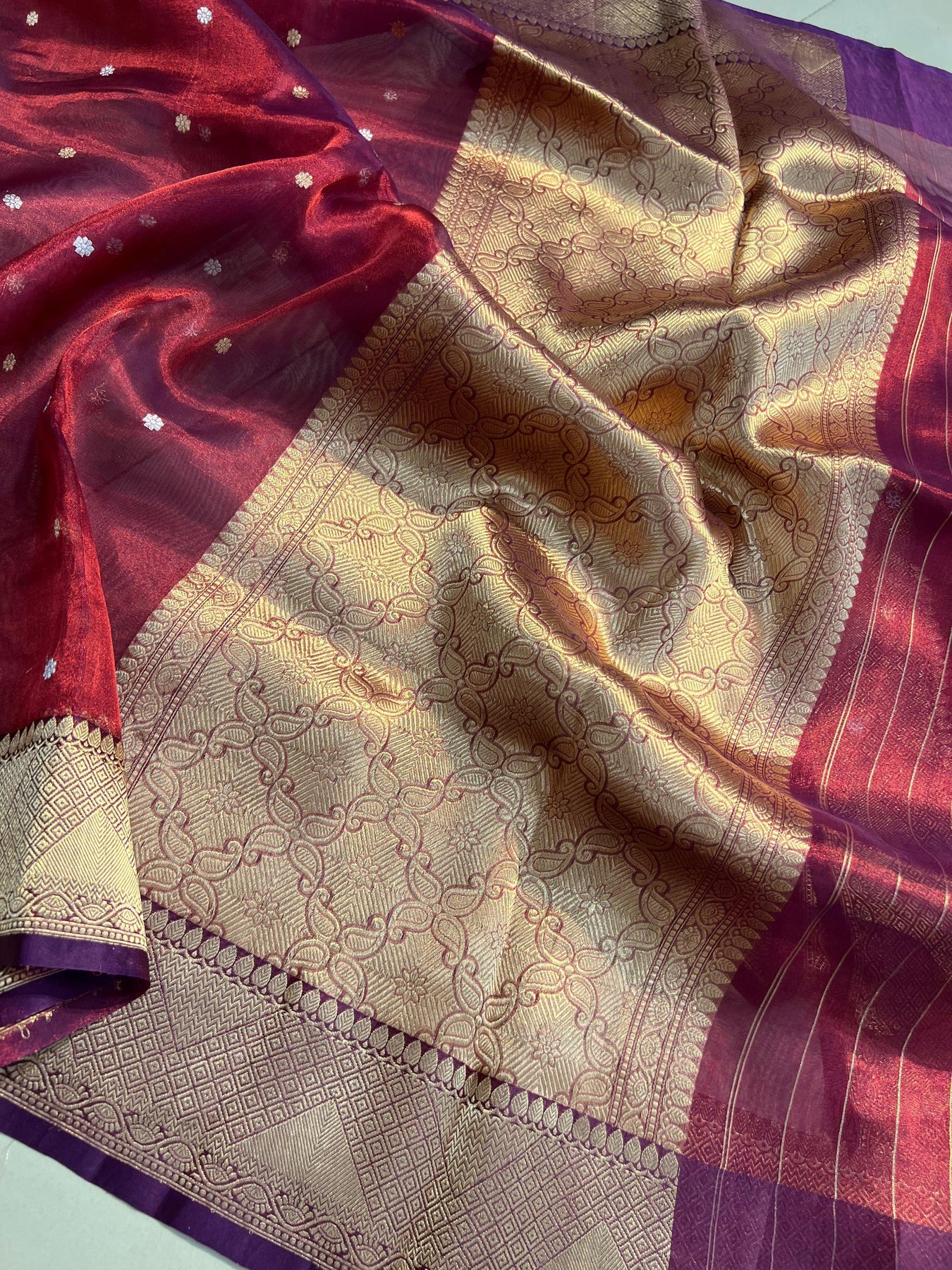 Maroon Banarasi Handloom Organza Tissue Silk Saree