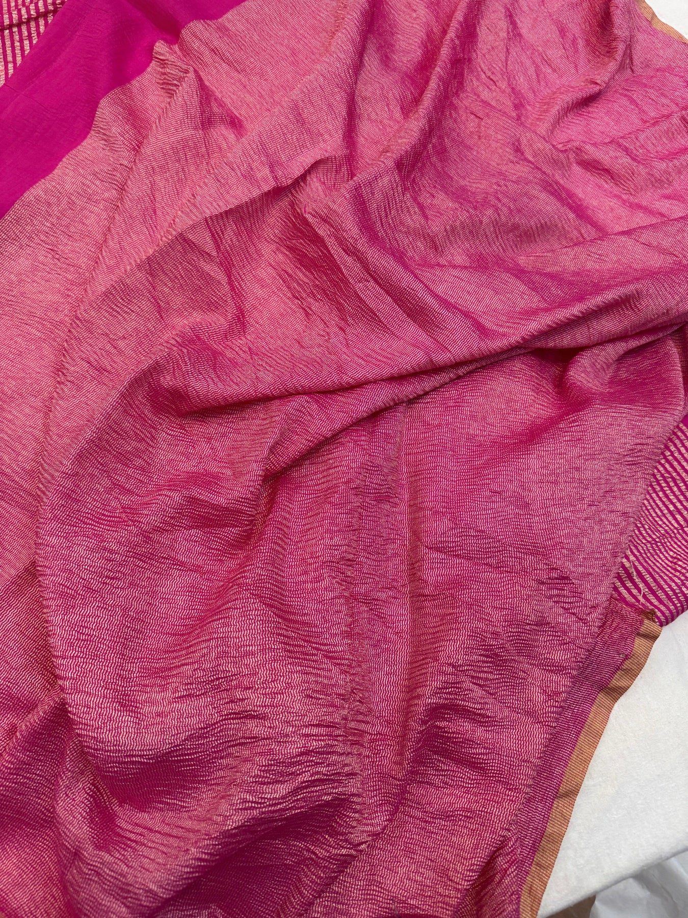 - Color - Rani Pink Banarasi saree.