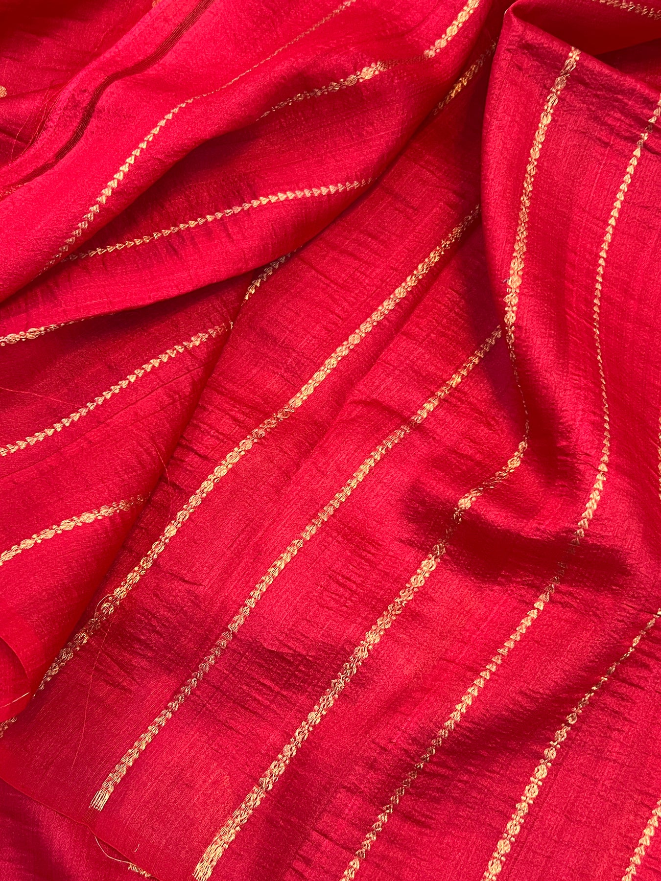 Rani Pink Pure Tussar Silk Handloom Banarasi Saree