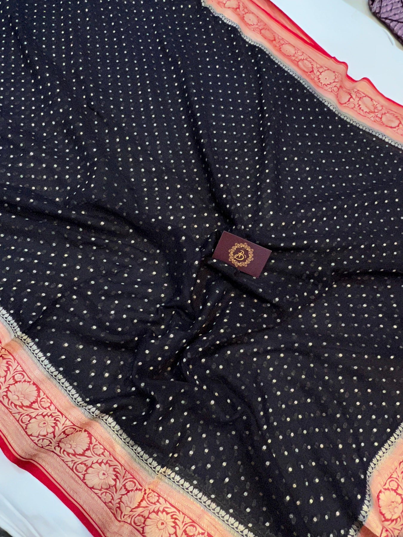 Black Banarasi Handloom Pure Khaddi Georgette Saree