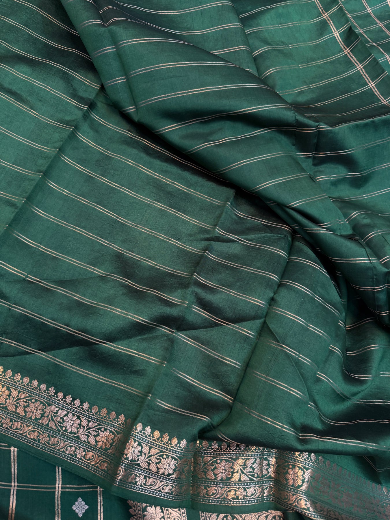 Bottle Green Pure Silk Handloom Banarasi Saree