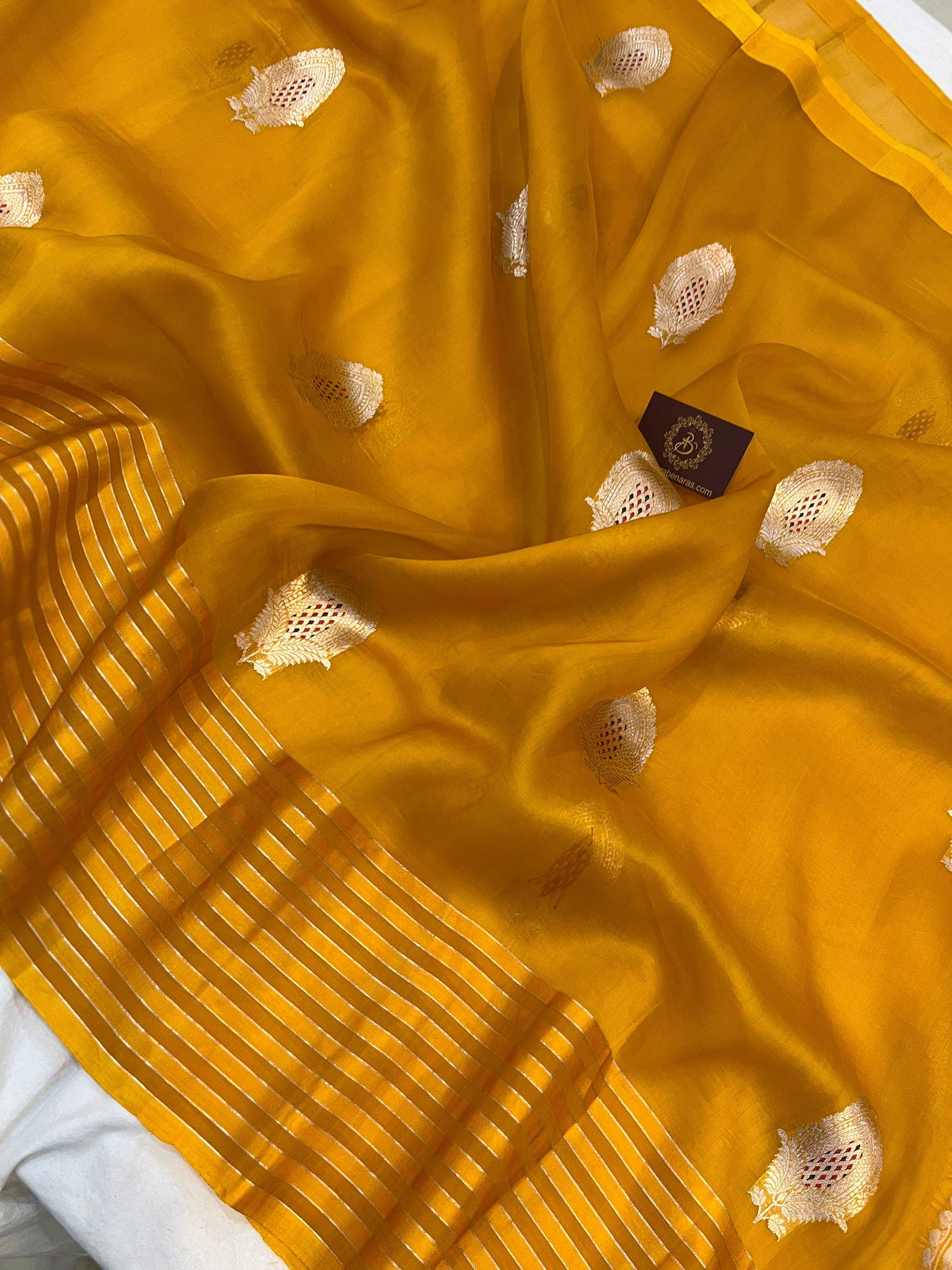 Mustard Yellow Pure Banarasi Handloom Kora Silk Saree