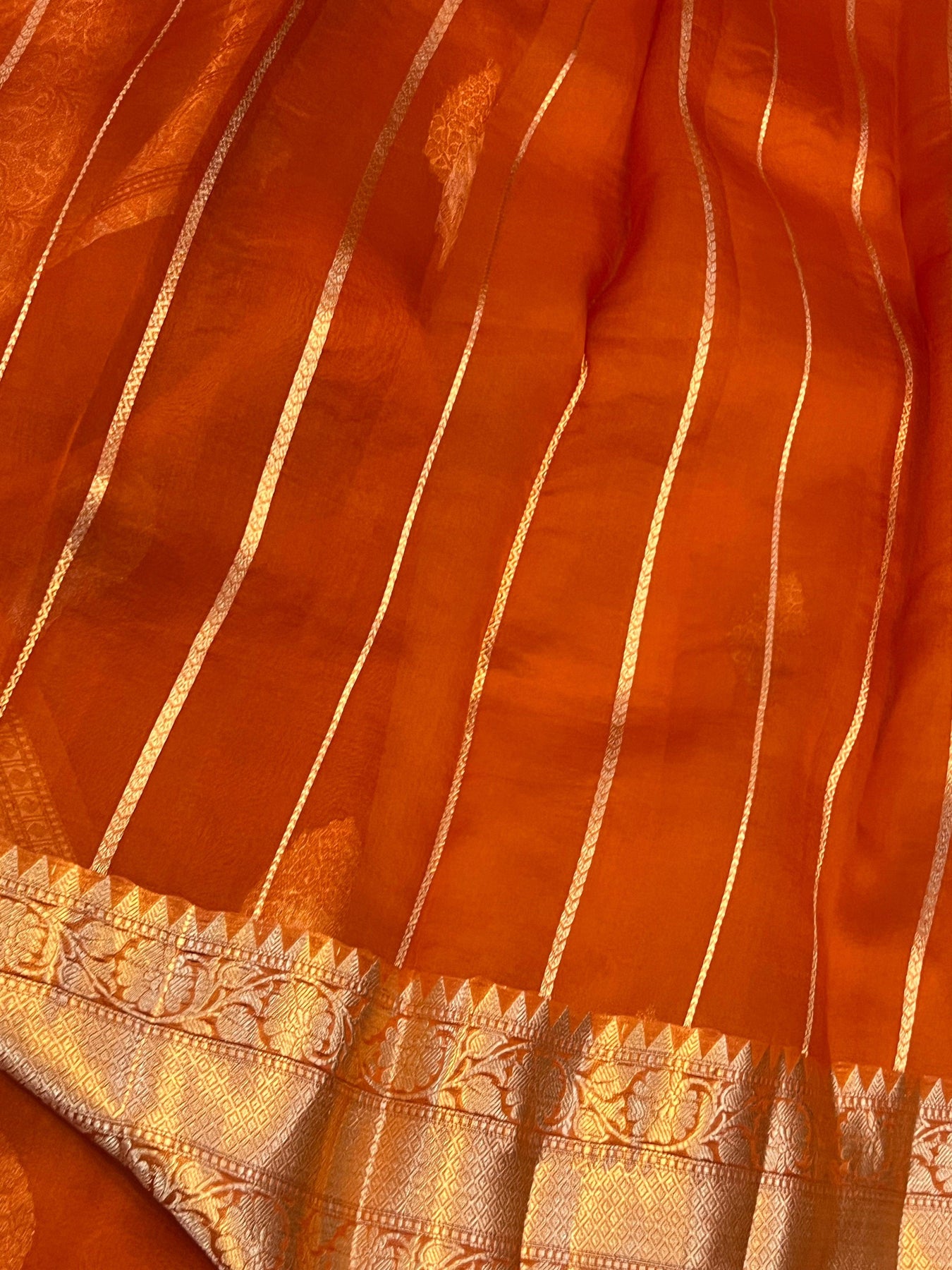 Orange Pure Banarasi Handloom Kora Silk Saree