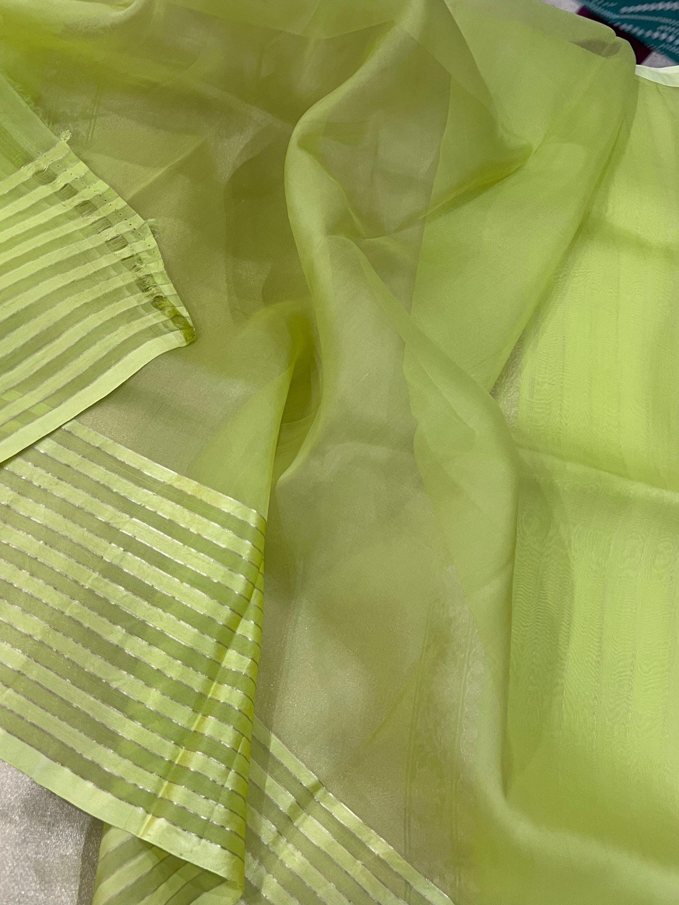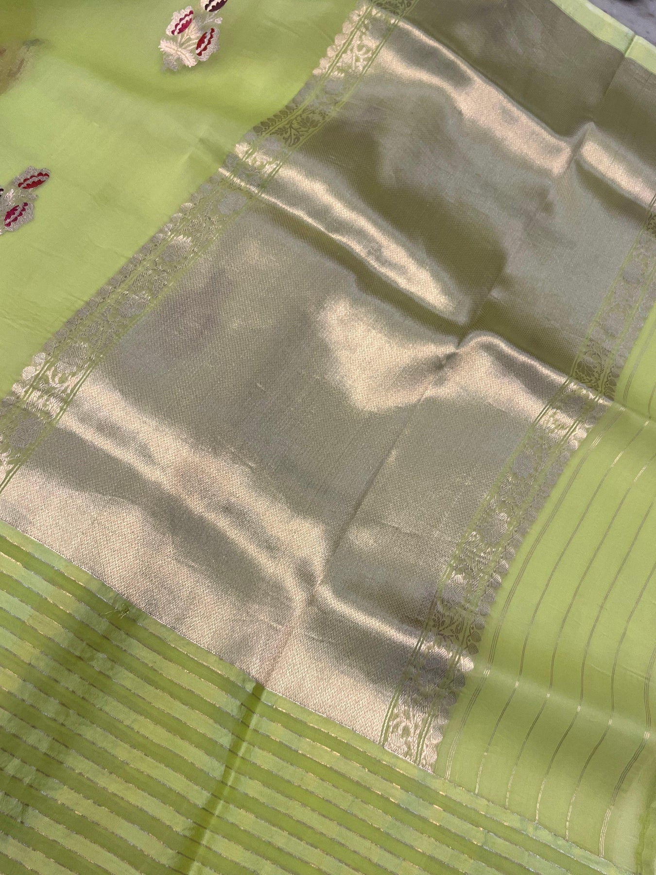 Pre Order :: Pastel Green Pure Banarasi Handloom Kora Silk Saree