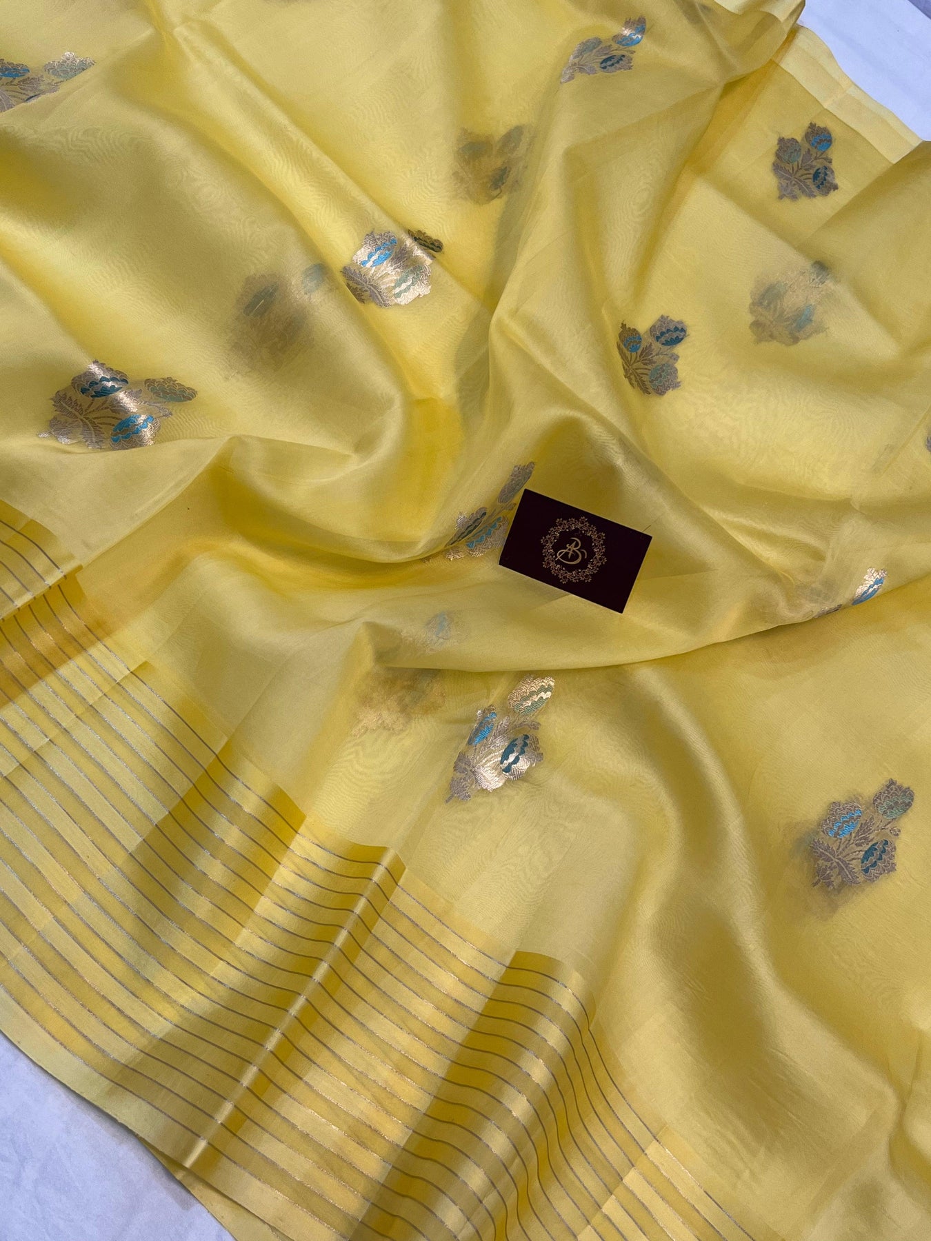 Pre Order :: Lemon Yellow Pure Banarasi Handloom Kora Silk Saree