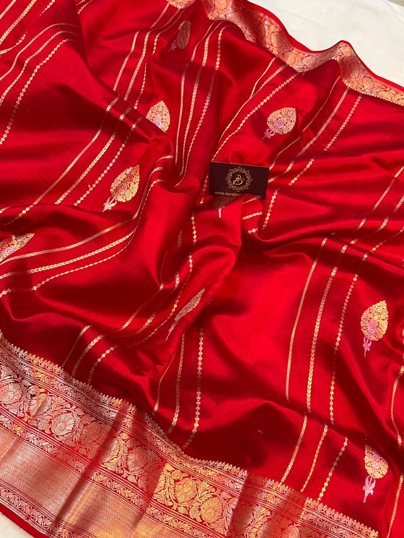Red Pure Banarasi Handloom Silk Saree - Aura Benaras