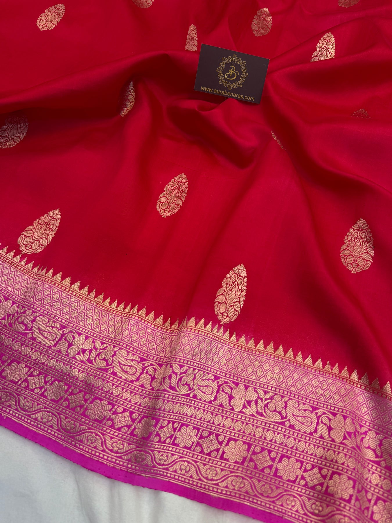 - Color - Red Banarasi saree with Rani Pink contrast.