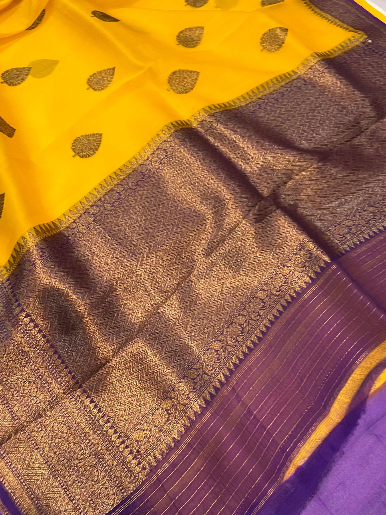 Yellow Pure Banarasi Handloom Kora Silk Saree