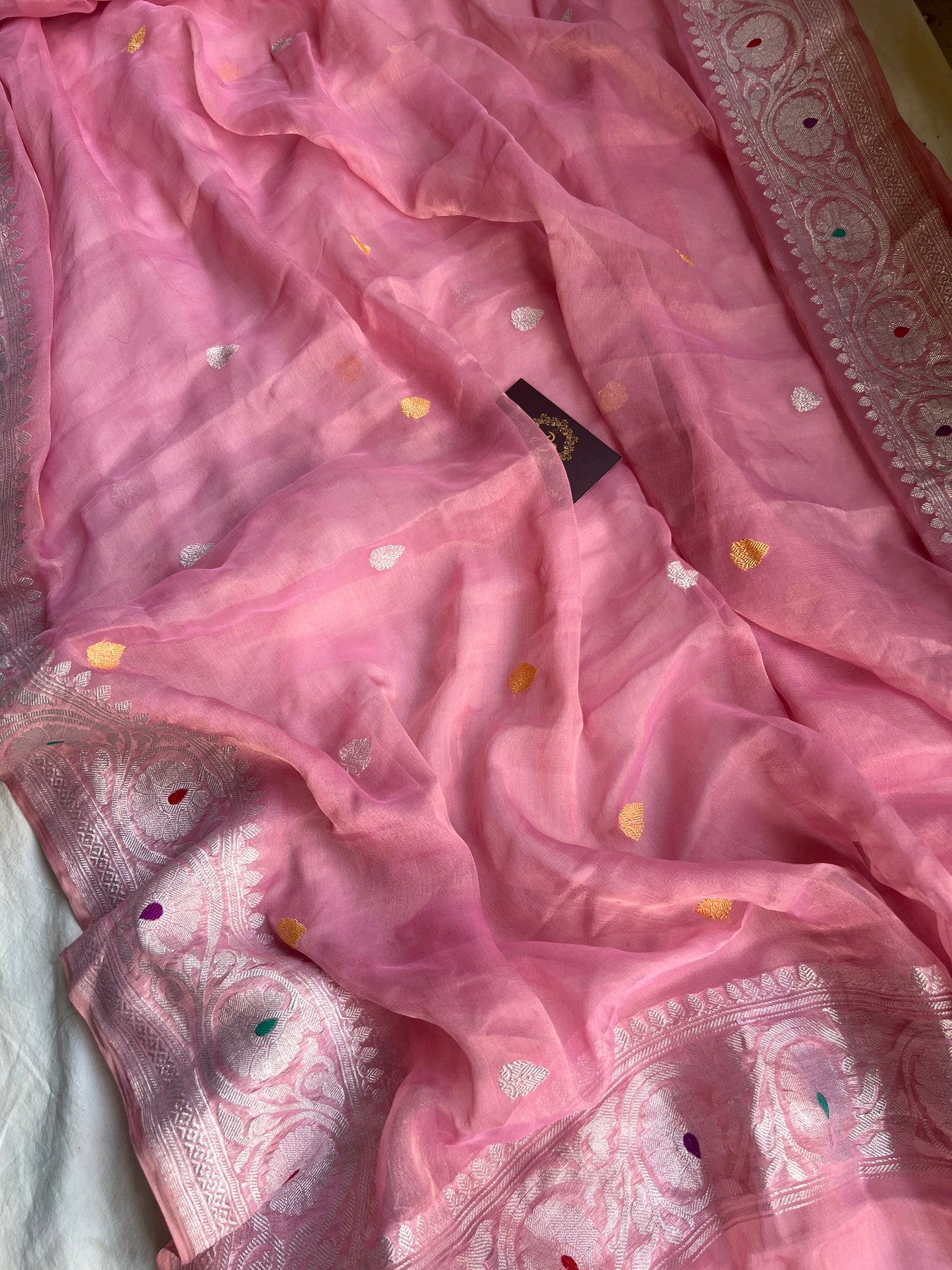 Baby Pink Pure Banarasi Chiffon Tissue Silk Saree
