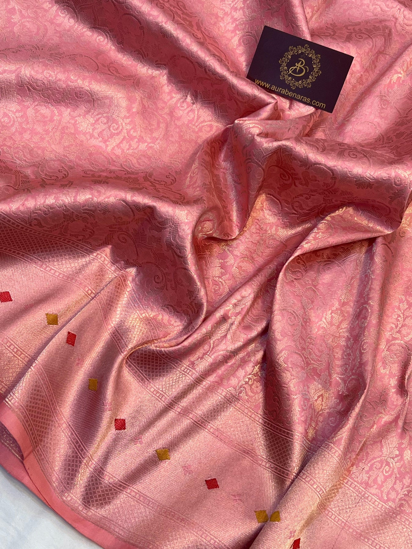 Baby Pink Pure Katan silk Handloom Banarasi Saree
