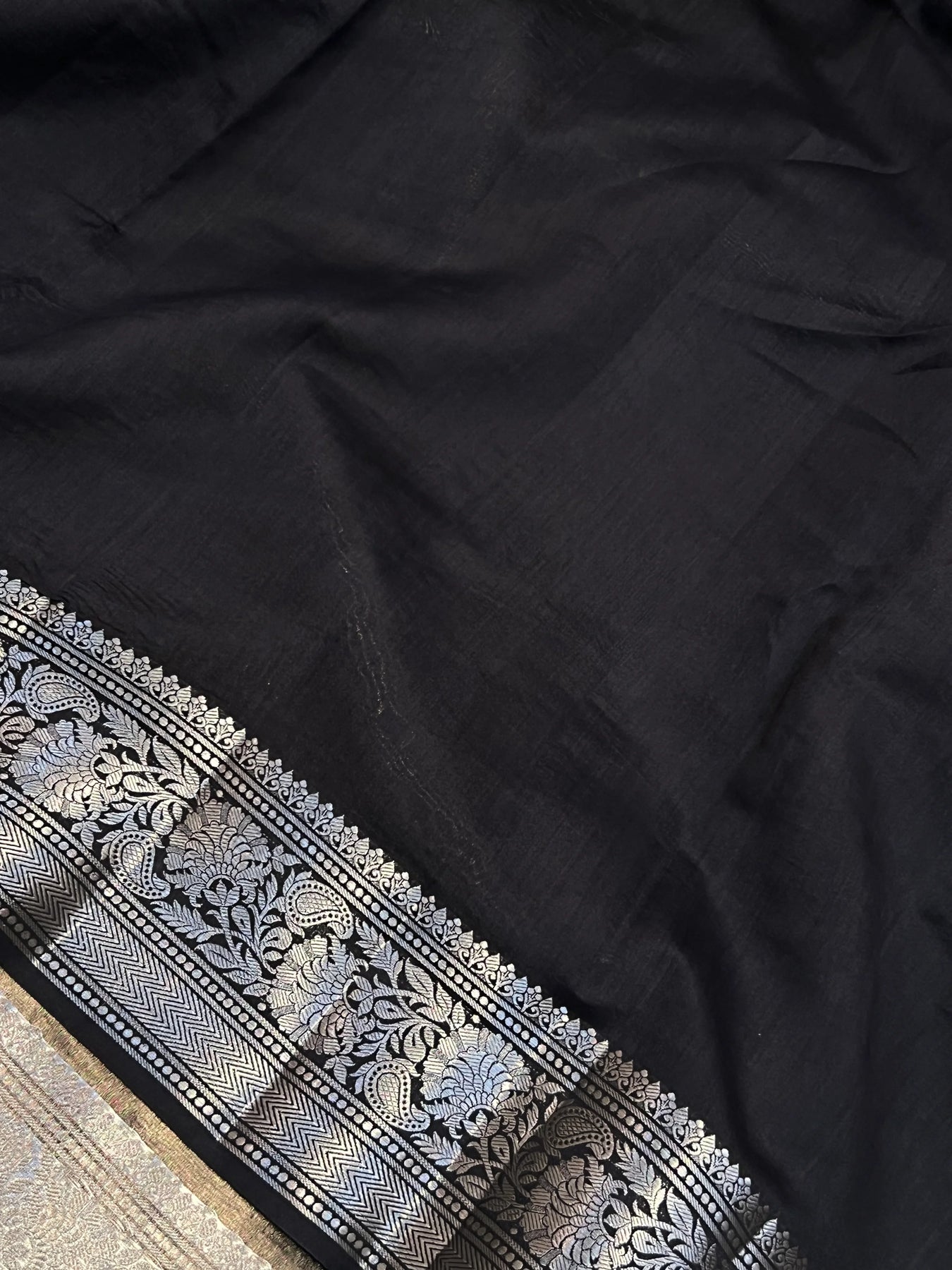 Black Banarasi Handloom Crush Kora Tissue Silk Saree