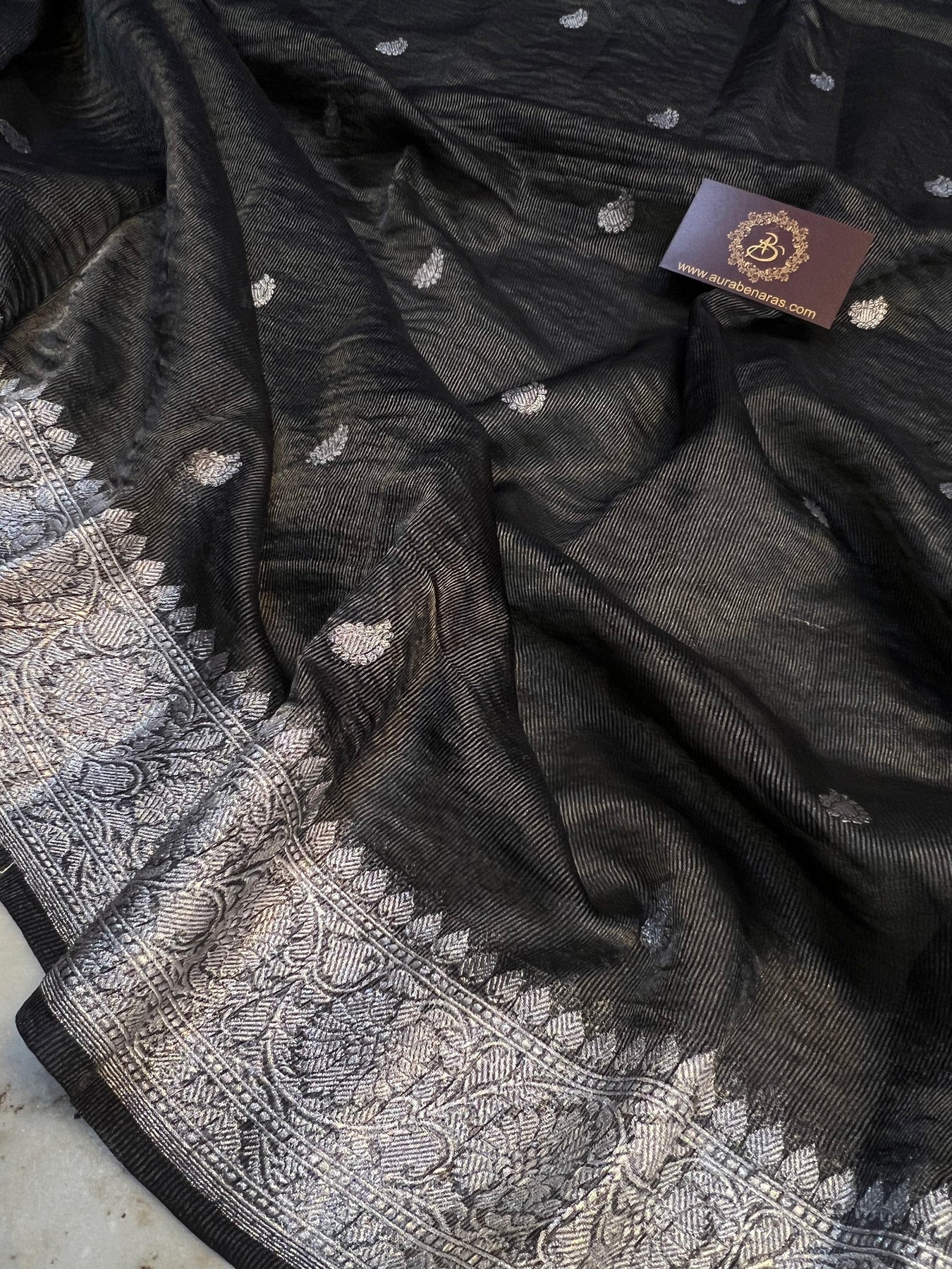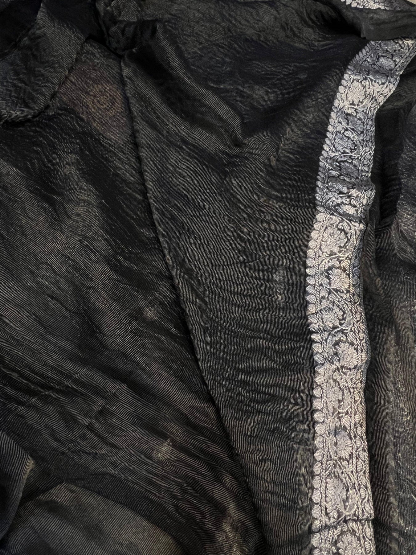 Pre Order :: Black Pure Banarasi Chiffon Tissue Silk Saree