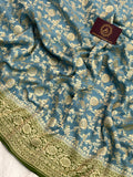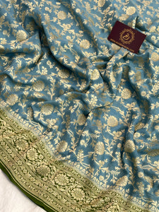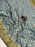 Greenish Grey Pure Banarasi Handloom Khaddi Georgette Saree