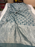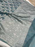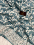 Grey Blue Pure Khaddi Georgette Handloom Banarasi Saree