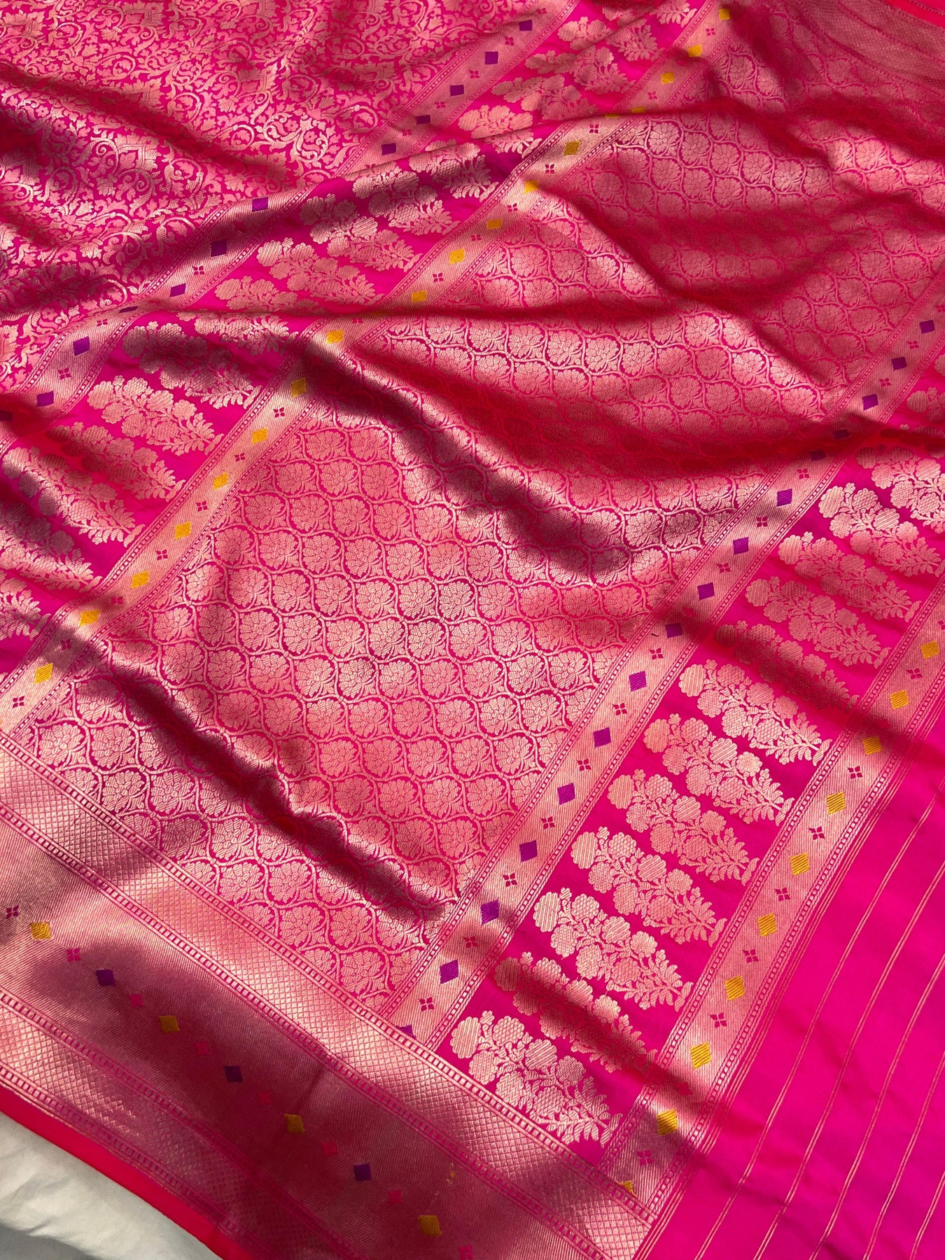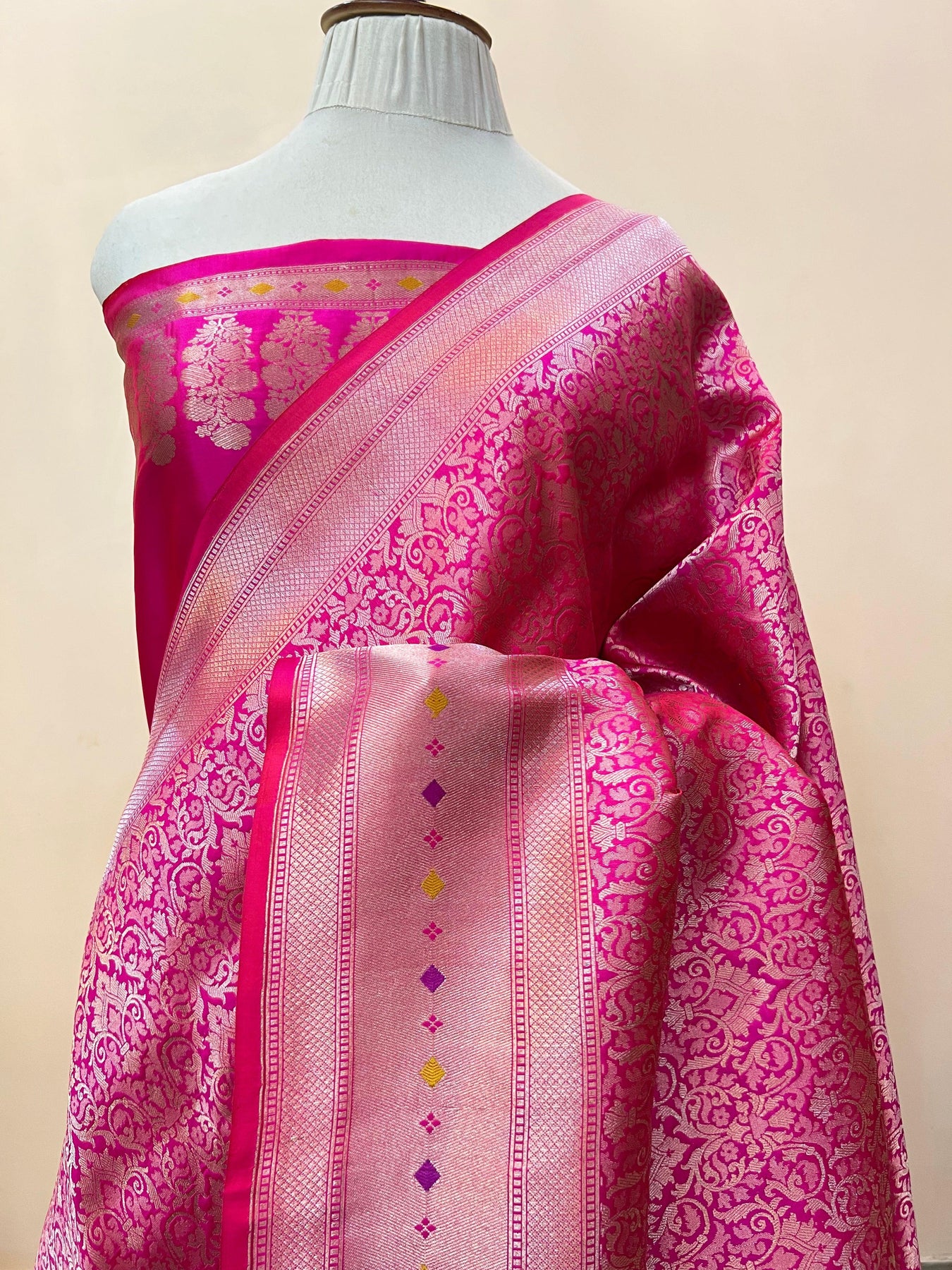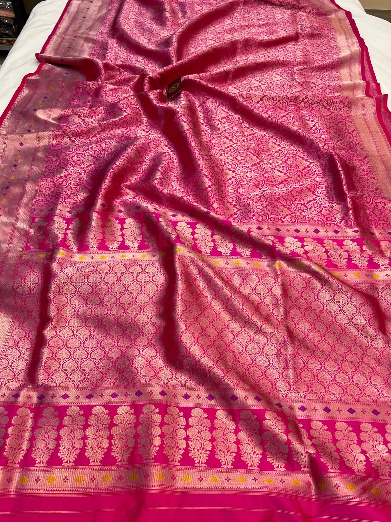 Hot Pink Pure Katan silk Handloom Banarasi Saree