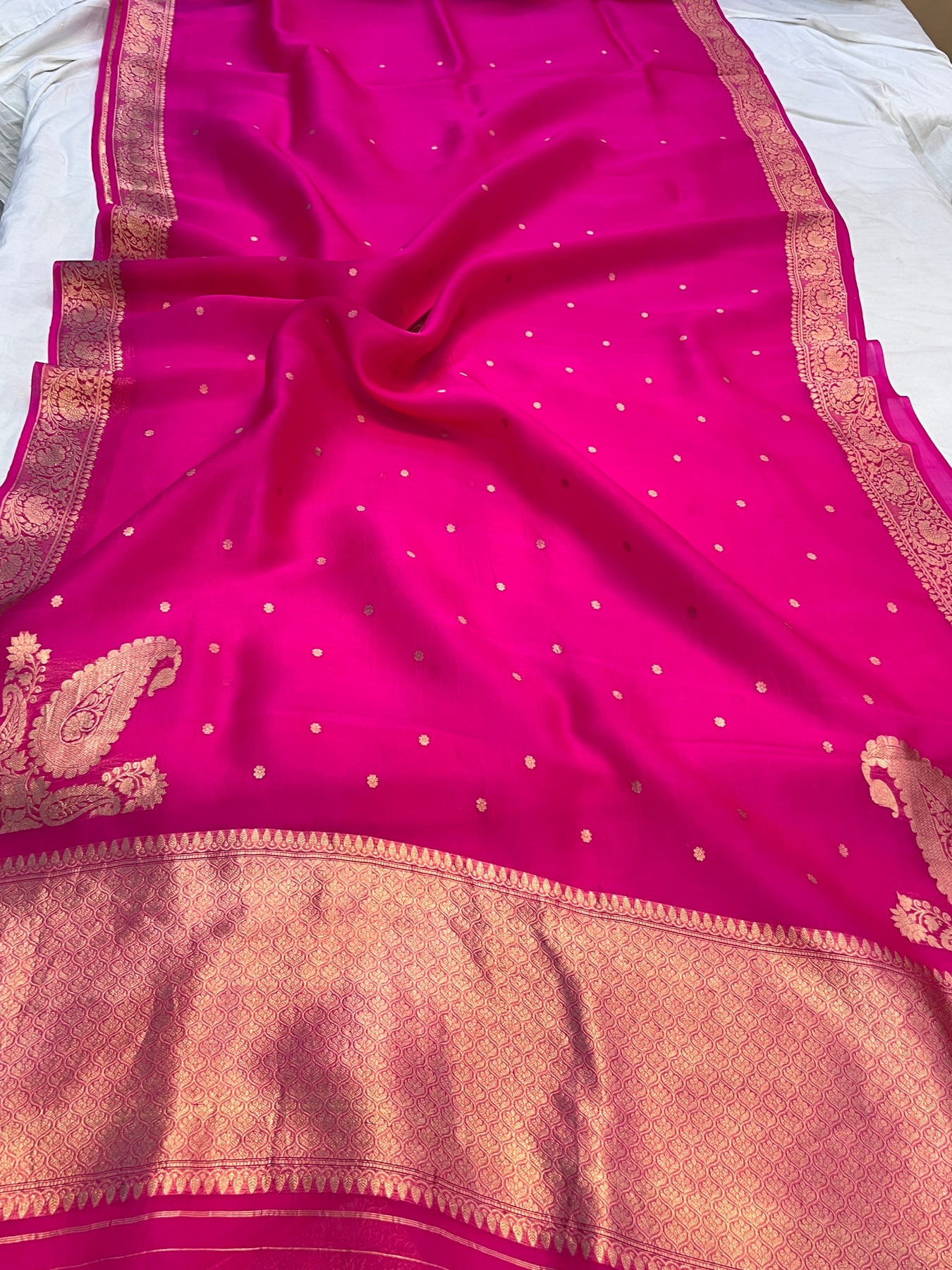 - Color - Hot Pink Banarasi saree.