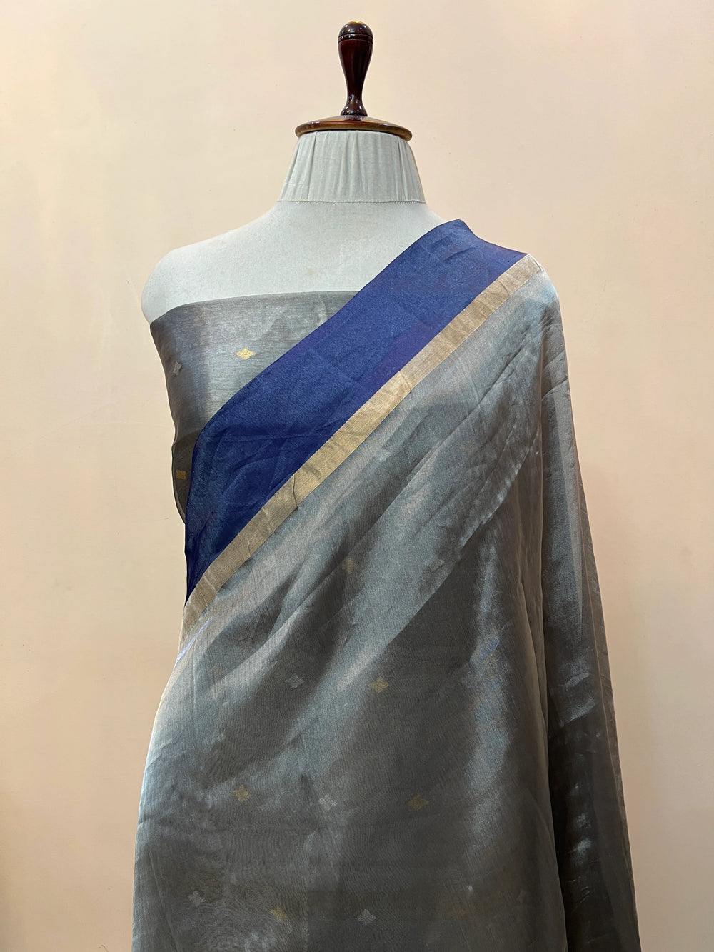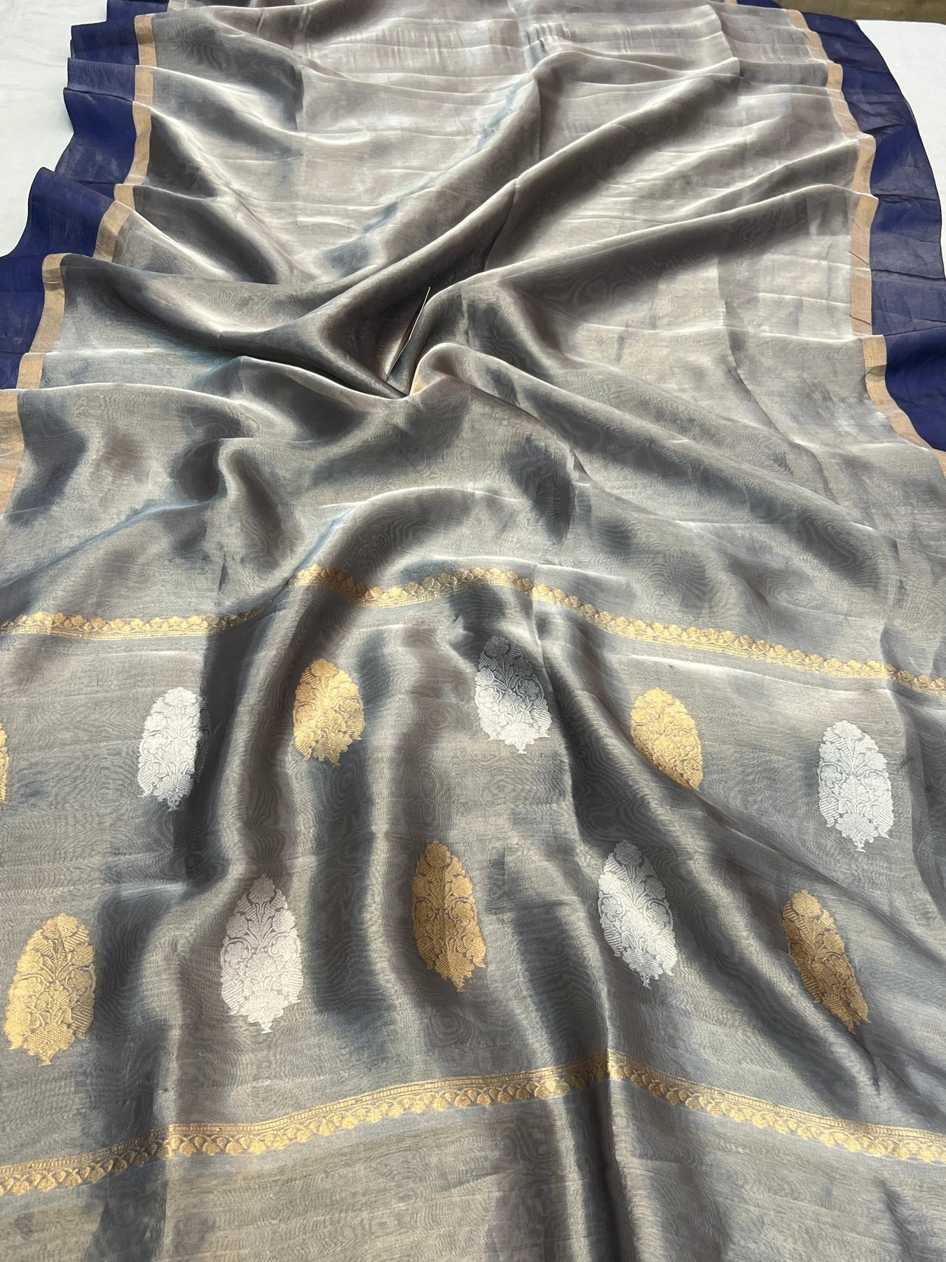 Navy Blue Pure Tissue Silk Handloom Banarasi Saree