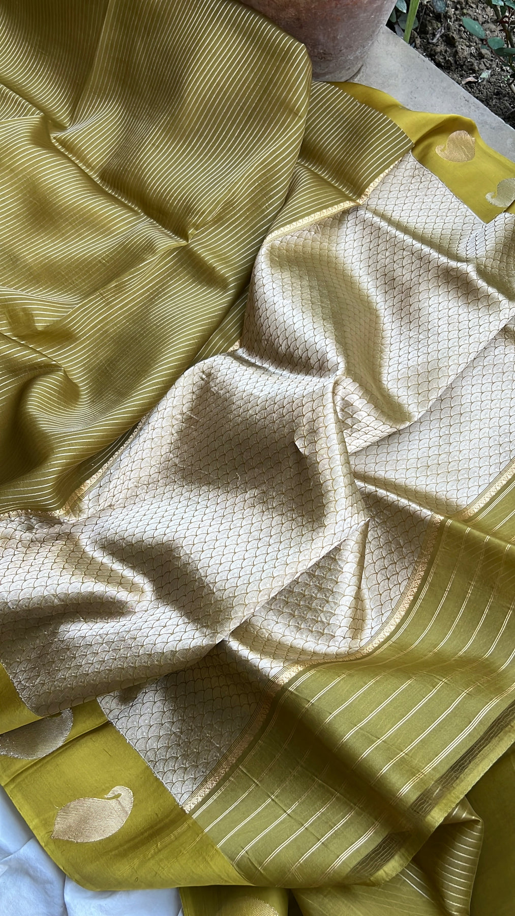Olive Green Banarasi Handloom Kora Silk Saree