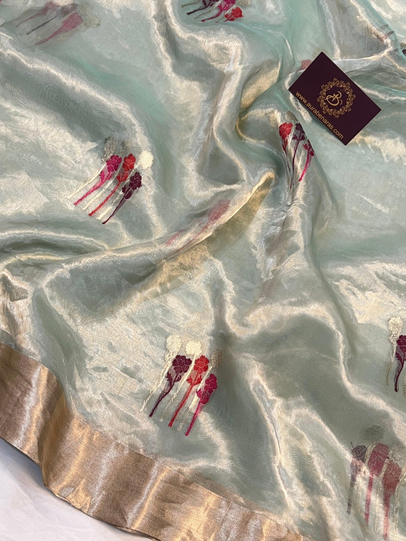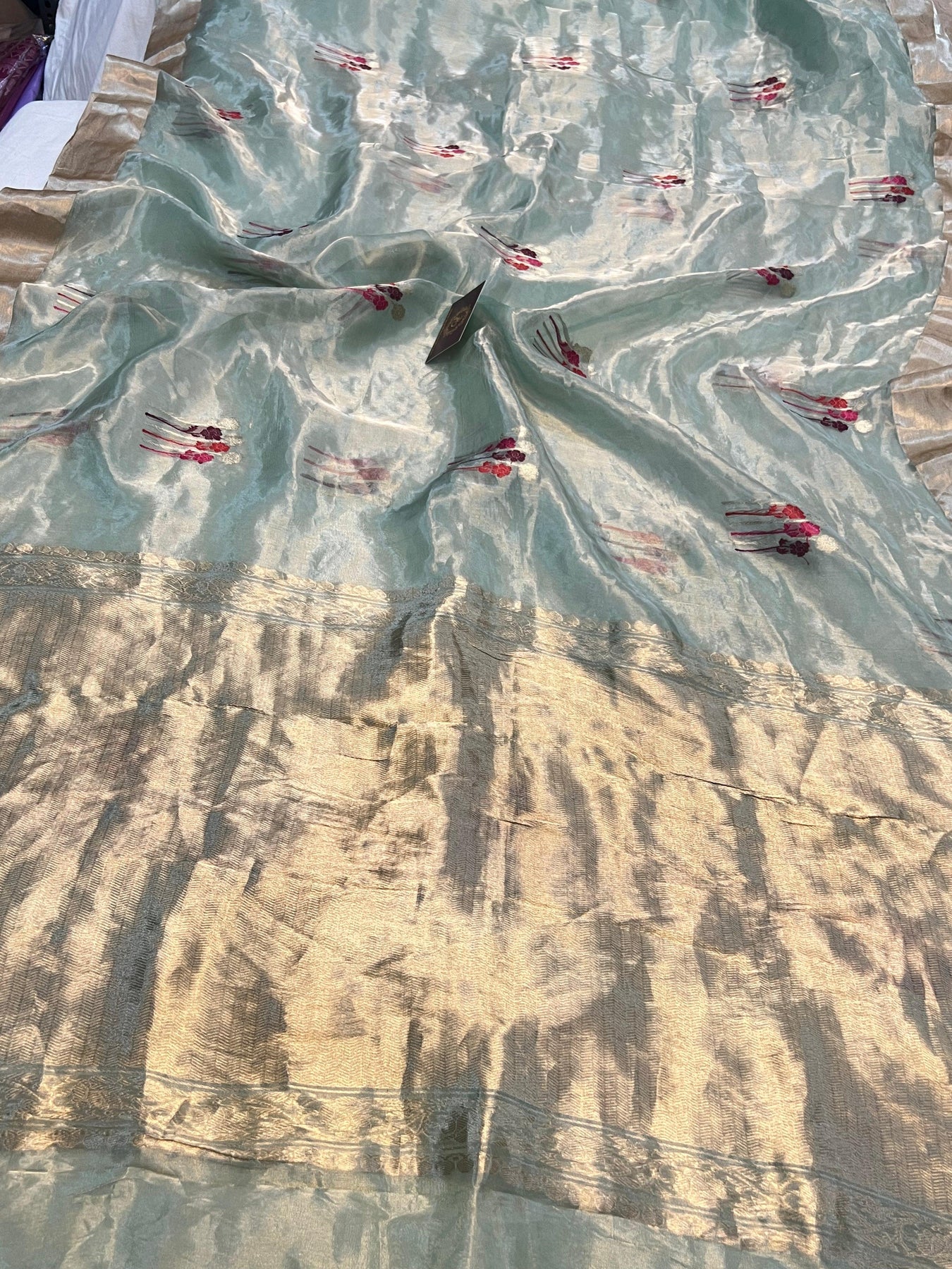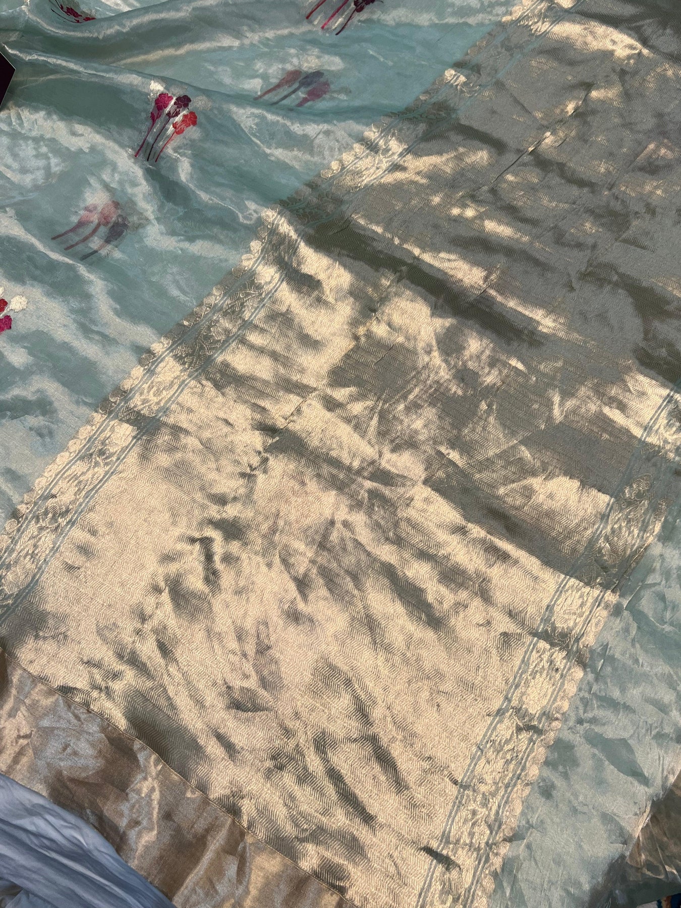 Pale Blue Pure Banarasi Handloom Tissue Silk Saree