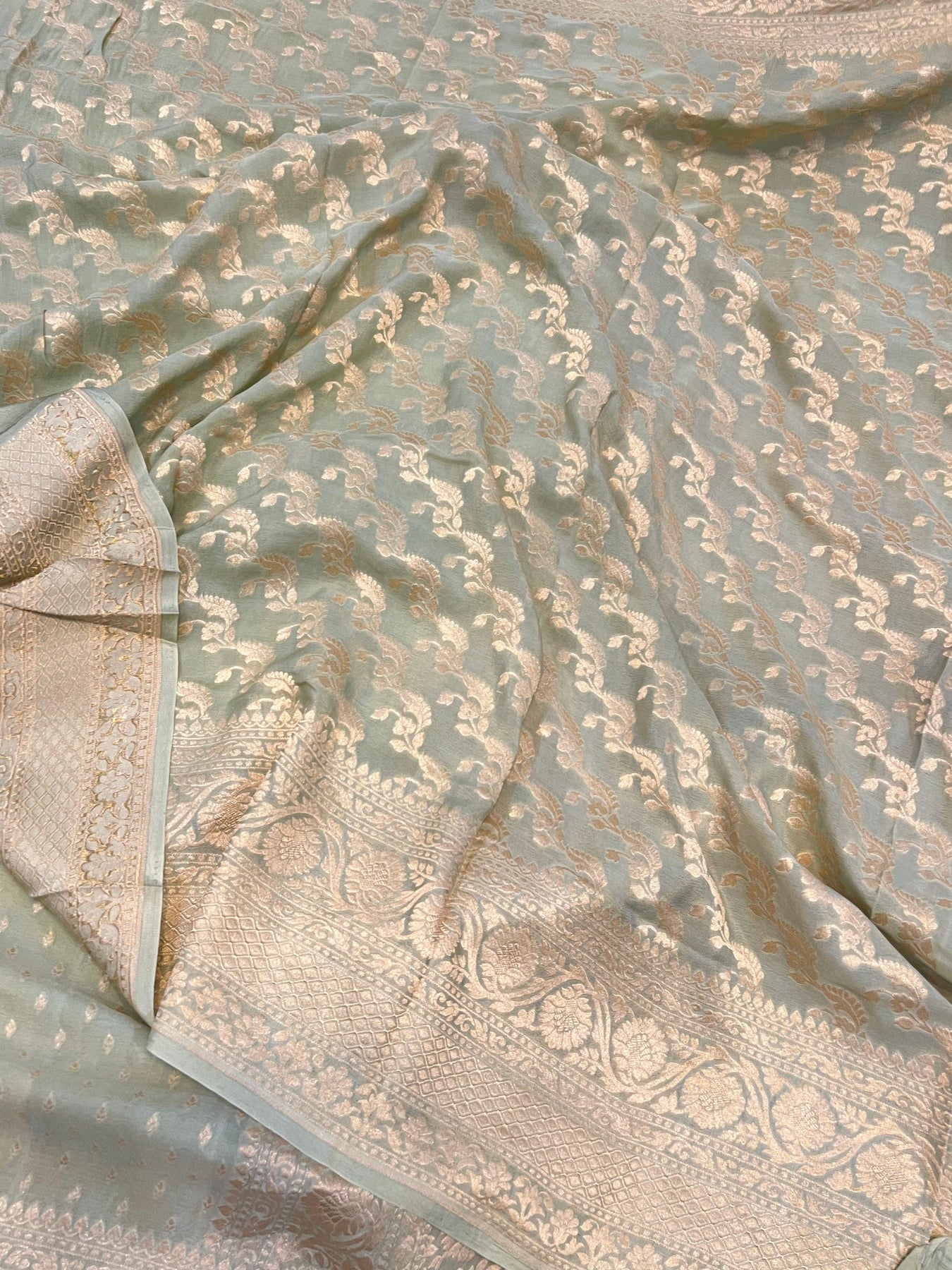 Pastel Green Pure Banarasi Khaddi Crepe Silk Saree
