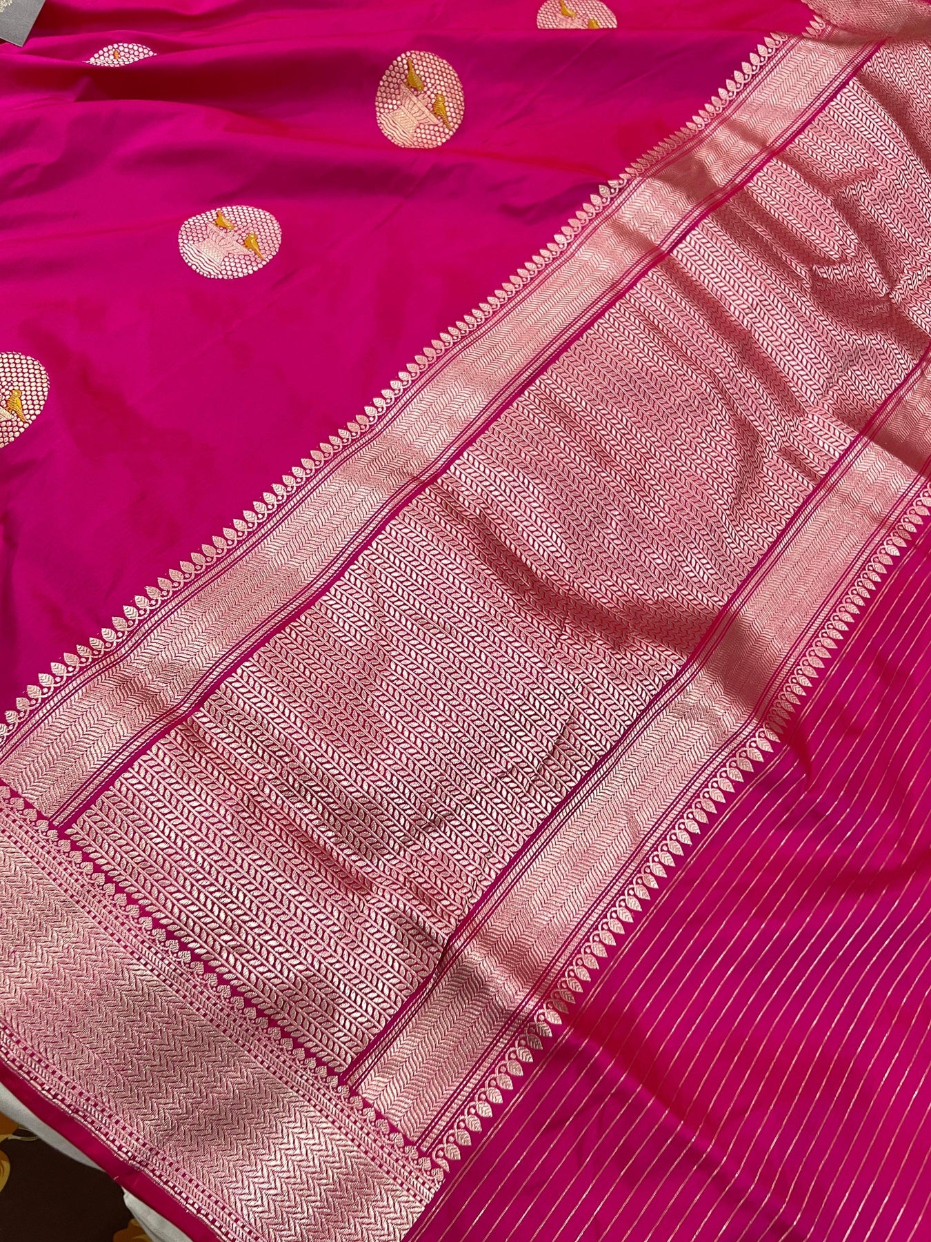 Rani Pink Banarasi Handloom Katan Silk Saree