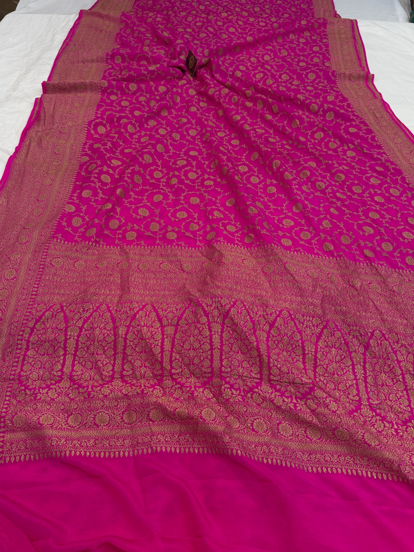 Rani Pink Pure Crepe Silk Handloom Banarasi Saree