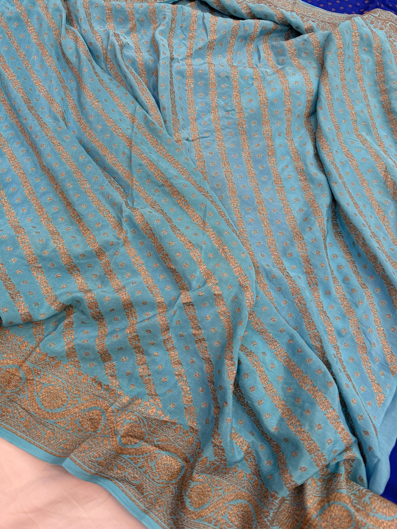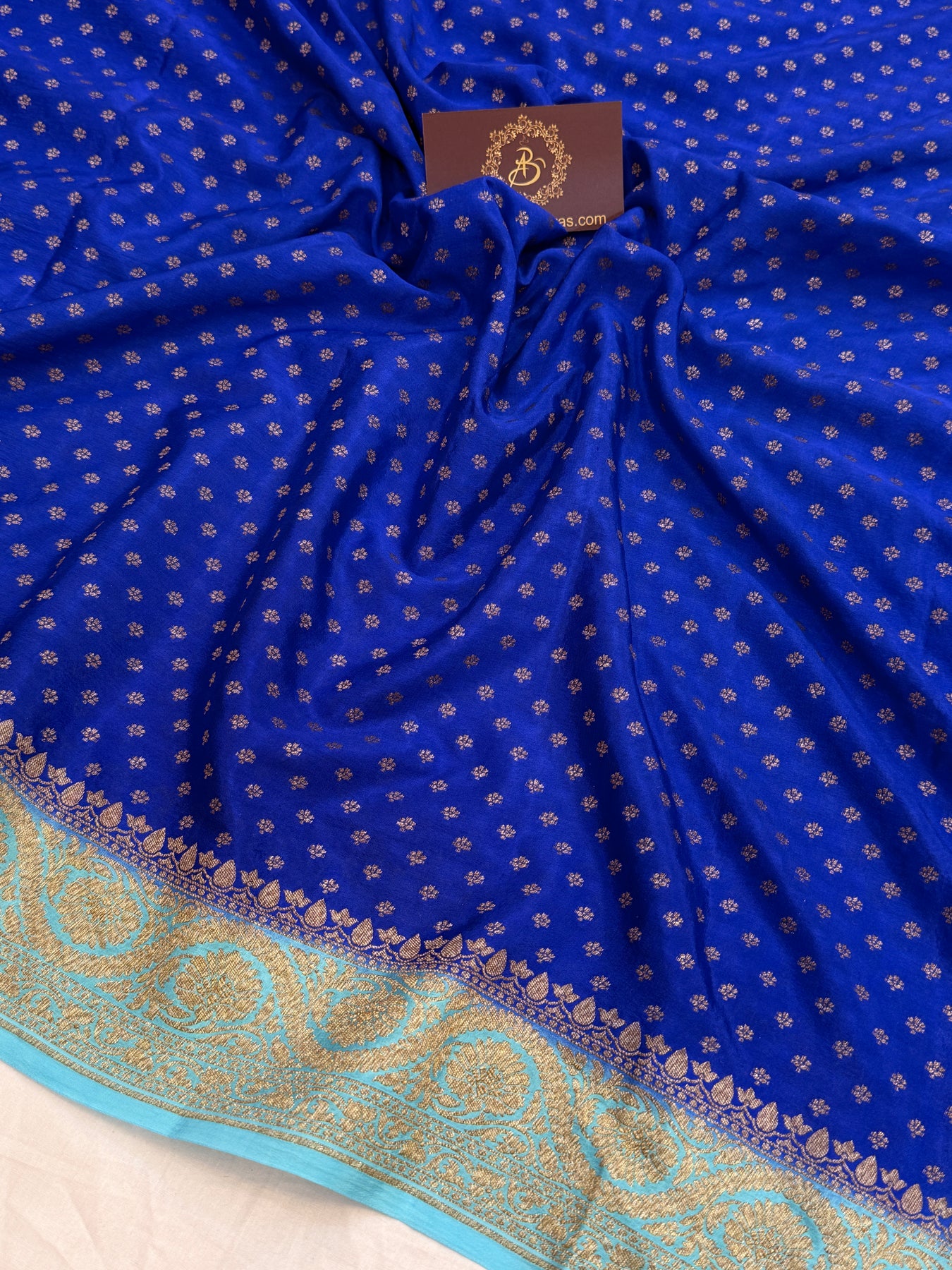 Royal Blue Pure Crepe Silk Handloom Banarasi Saree